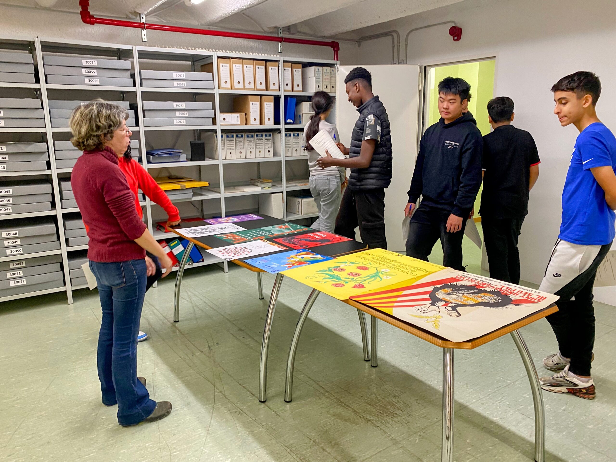 A més, la visita va oferir una aproximació visual a materials històrics molt diversos i valuosos, com fotografies, cartells, plànols urbans i documents municipals, procedents tant d’organismes públics com d’arxius privats i particulars. Aquests elements van captivar l’alumnat, mostrant-los les transformacions dels barris, edificis i espais del districte al llarg dels anys i ajudant-los a comprendre la importància de conservar aquests testimonis per a les generacions futures.
