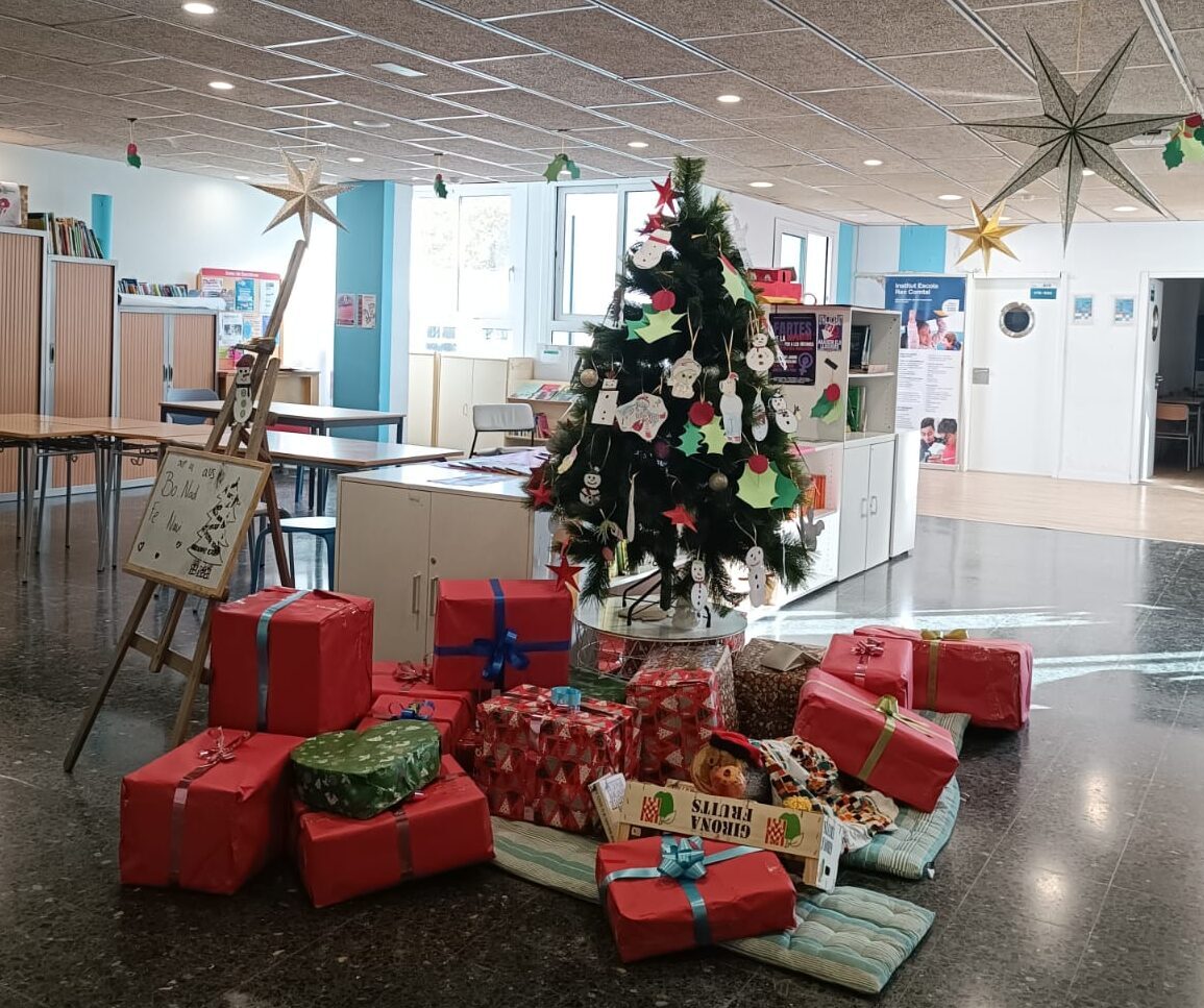 L’esperit nadalenc aquest any batega fort pels passadissos del Rec. Més concretament, a l’espai Àgora, on els alumnes del centre, sota la batuta de la Vit Marín, docent de Visual i Plàstica, han construït un preciós arbre, envoltat de regals, amb l’immancable Tió.