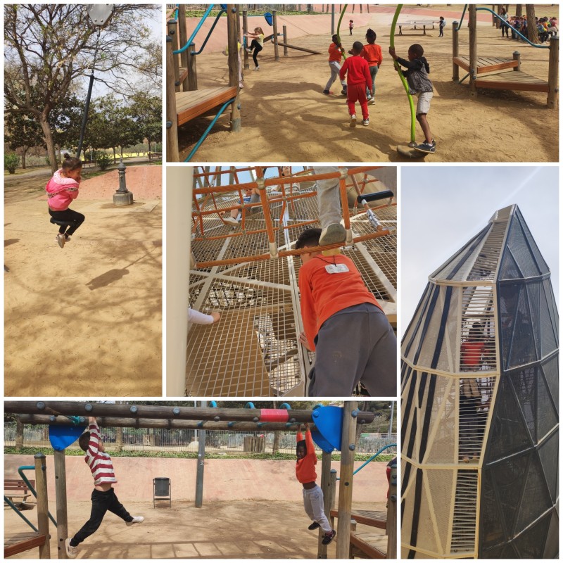 Un cop acabada l’activitat i trobar el joc que la Magalí havia perdut, ens vam acomiadar de tothom i vam aprofitar per esmorzar i jugar al parc La Balena de Nou Barris. Aquest parc tenia diferents estructures per poder enfilar-se, saltar i gaudir sense descans.