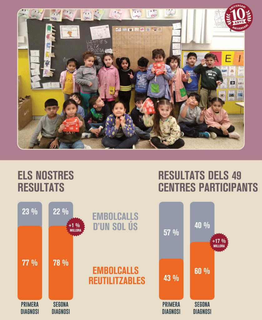 Els alumnes de P-5 han participat en la xarxa dels Embolcalls + Sostenibles dins el projecte Escoles + Sostenibles de l’ajuntament de Barcelona. L’escola està implicada en aquest projecte des de fa uns quants anys. La finalitat és la de afavorir els esmorzars més saludables i la reducció d’embolcalls. En acabar les activitats d’aquest projecte