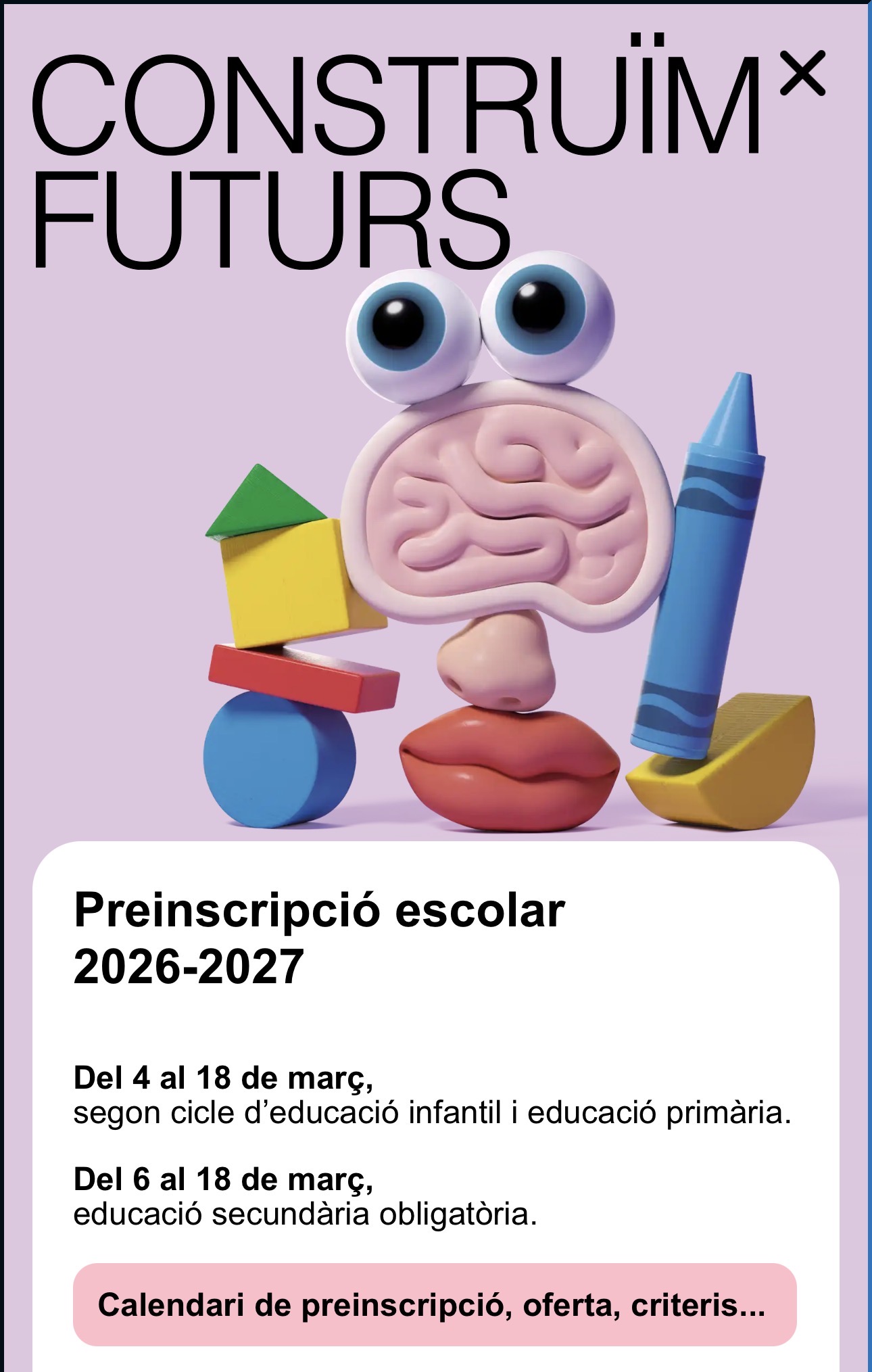 Avui comença la preinscripció escolar Tota la informació en el següent enllaç. PREINSCRIPCIÓ ESCOLAR