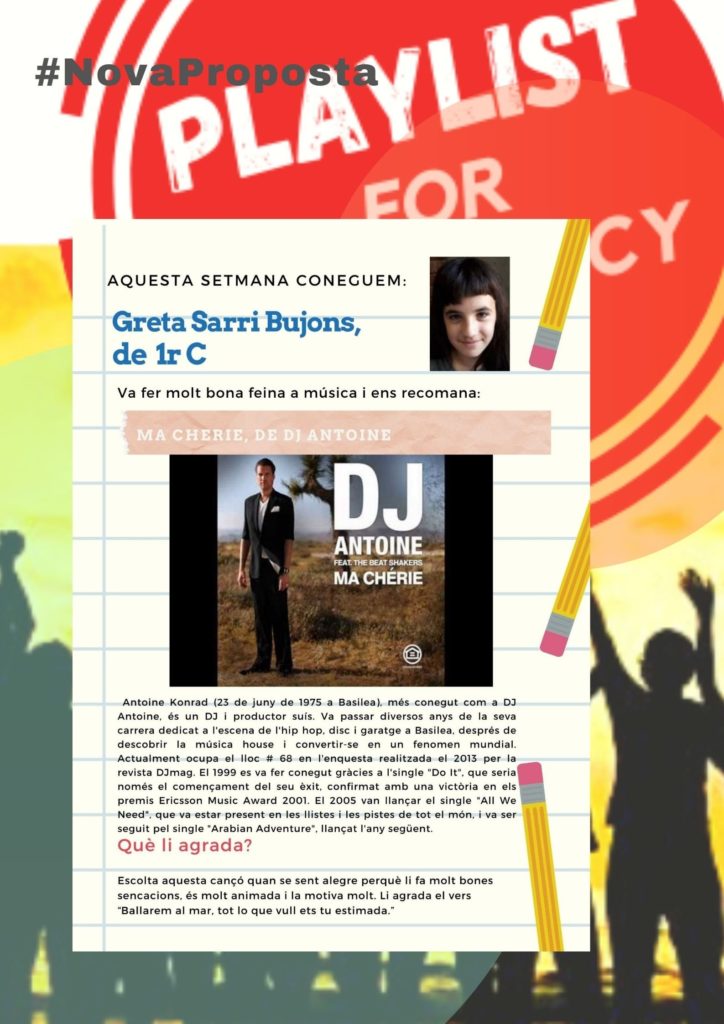 No dubteu a demanar al vostre professorat que es fixi bé en els esforços i els progressos que feu i demaneu que us enviï el formulari perquè la vostra cançó soni per tot l’institut! Aquesta setmana tenim una PROPOSTA DE 3rA!