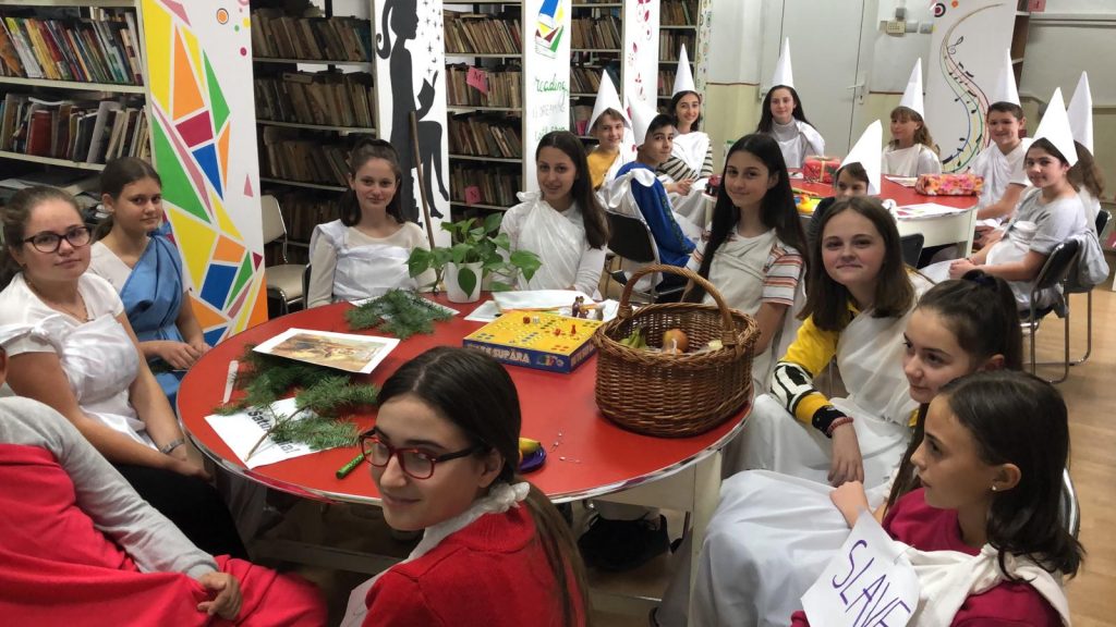 Avui els alumnes de 4t d’ESO que participen del projecte Erasmus d’enguany han fet una sessió de conversa en anglès amb els altres països participants. La sessió ha estat amb Skype i han tingut d’explicar diferents característiques de la Saturnàlia romana (el Nadal actual). Alguns grups han representat una petita obra de teatre i anaven