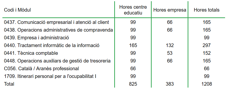 CFGM- Mòduls del cicle Mòduls del cicle de grau mitjà de gestió administrativa Mòduls de 1r curs Mòduls de 2n curs