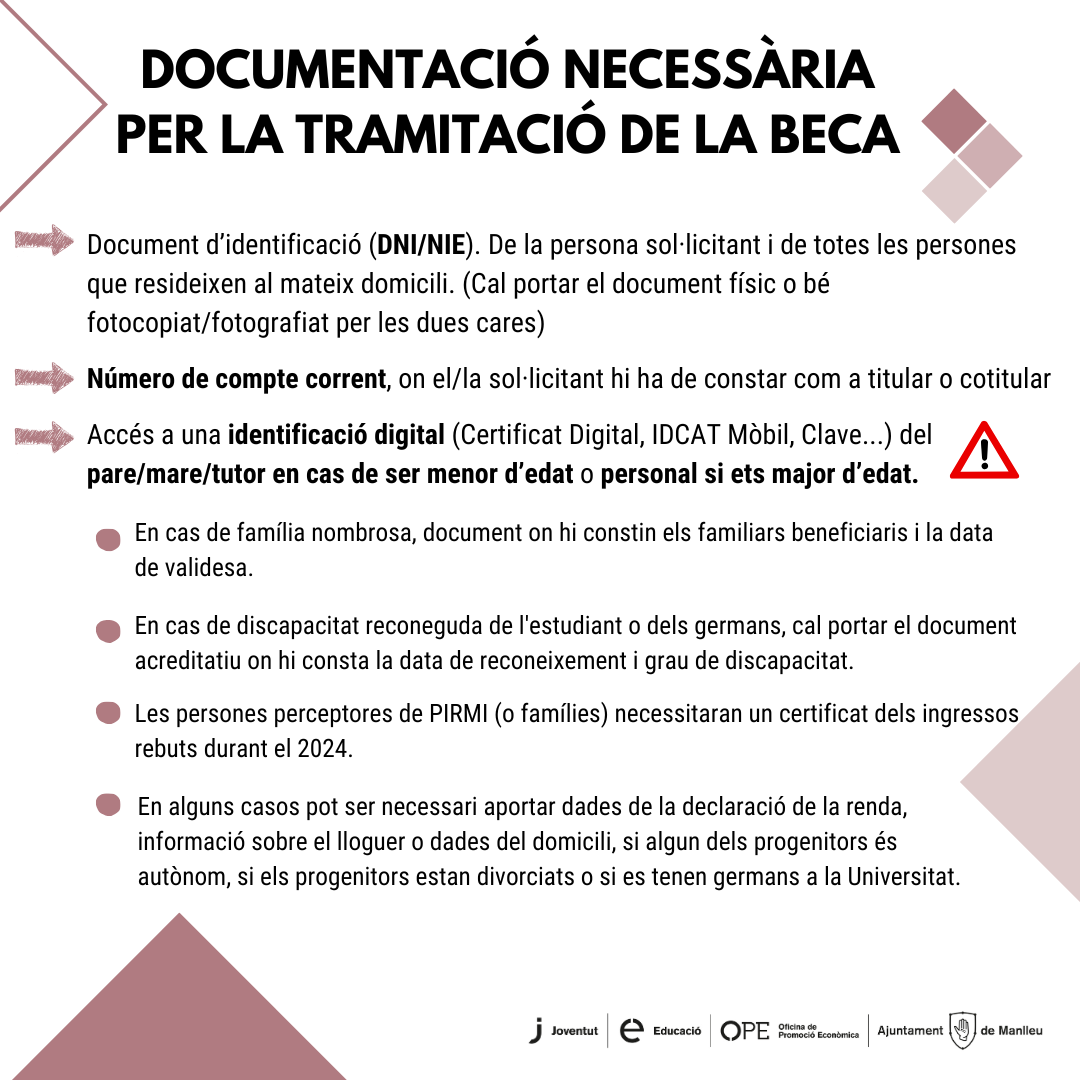 Des del Servei d’Orientació Acadèmica i Professional de l’Ajuntament de Manlleu, s’ofereix un  suport, per fer aquest tràmit, els dies 8, 22 i 29 d’abril, i 6 de maig, en horari de matí de 10.00 a 15.00h i les tardes del 20 d’abril a l’11 de maig, de 15.00 a 18.00h, a l’aula de formació de la biblioteca de Manlleu. En aquest espai, els joves i famílies que  demanin cita prèvia, podran utilitzar els ordinadors de la sala i disposaran d’ajuda per anar resolent dubtes i assegurar-se que la tramitació es dugui a terme.