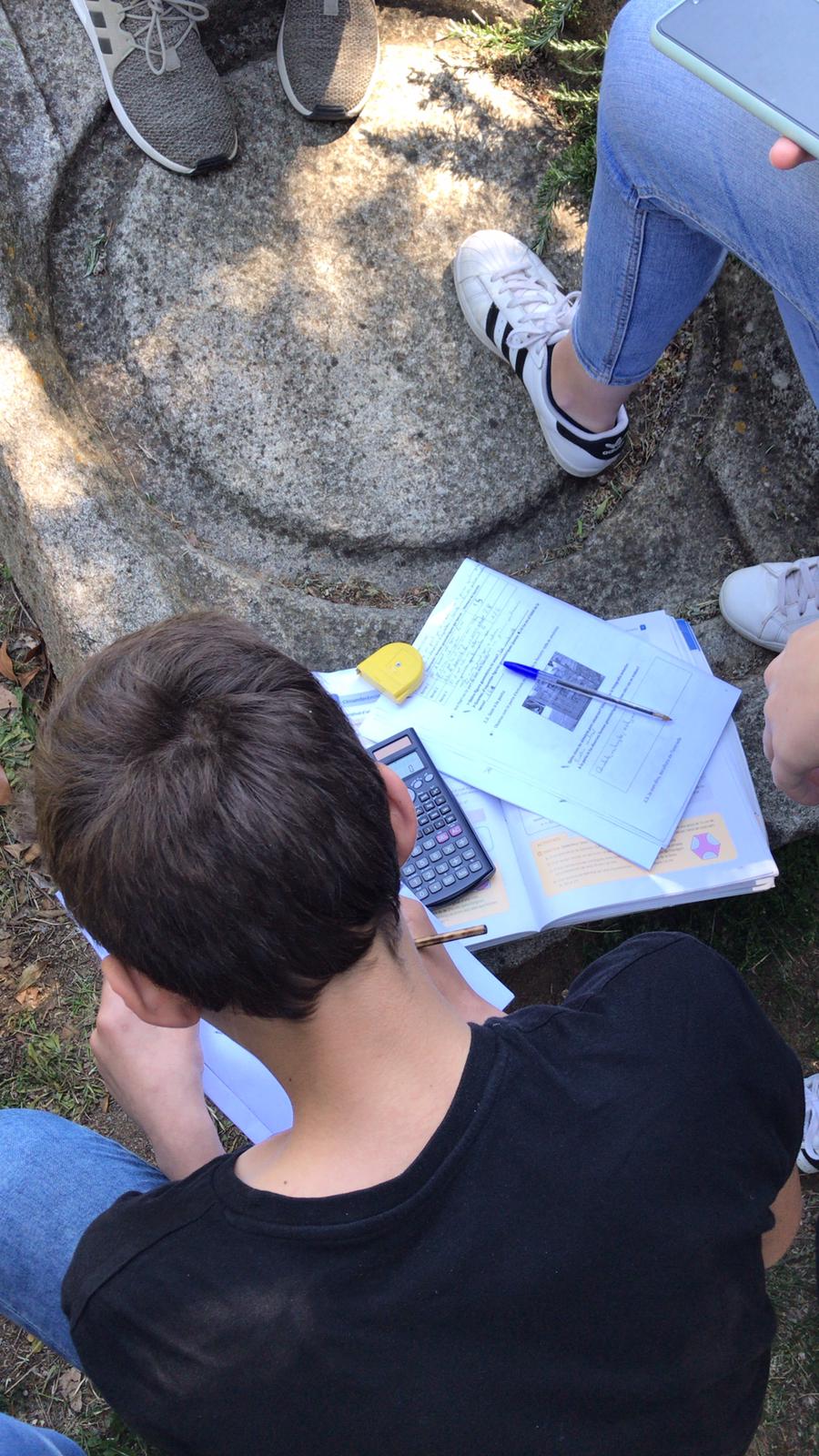 Els alumnes de tots el grups de 2n d’ESO van realitzar durant el dimecres i dijous passat els exercicis proposats de la “Ruta matemàtica per Sant Celoni”. Una activitat que planteja reptes i exercicis matemàtics que s’han de resoldre alhora que passegem i ens fixem en diferents indrets del nostre poble. Durant la sortida vam haver de fer diferents càlculs com ara: calcular quants litres d’aigua hi havia a la bassa de la Rectoria Vella, quina és l’escala del tauler d’escacs que hi ha al terra de la plaça de la biblioteca o esbrinar l’alçada dels arbres del carrer de la Creu Roja utilitzant la longitud de la nostra ombra, entre d’altres. Ens va servir per sortir del nostre entorn d’aula habitual, per aplicar els nostres coneixements, i, en definitiva, va ser una forma diferent de fer matemàtiques!