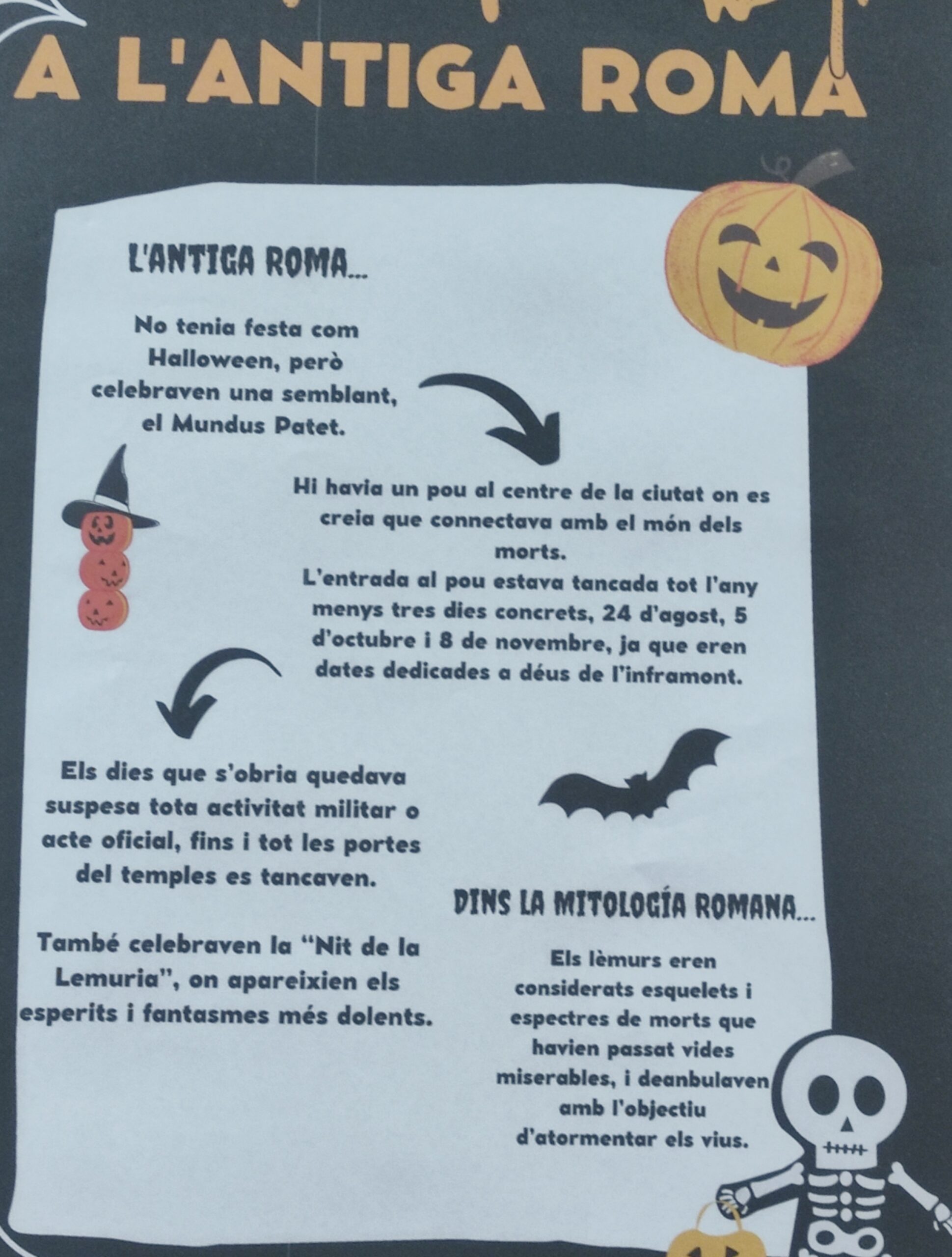 Des de fa anys, al Baldiri ens agrada celebrar el que per a nosaltres és el dia dedicat als difunts, que identifiquem amb la festa forana de Halloween. Enguany, els alumnes de Món Clàssic i Mitologia han investigat les arrels grecoromanes d’aquesta tradició. Aquests han estat alguns dels resultats…