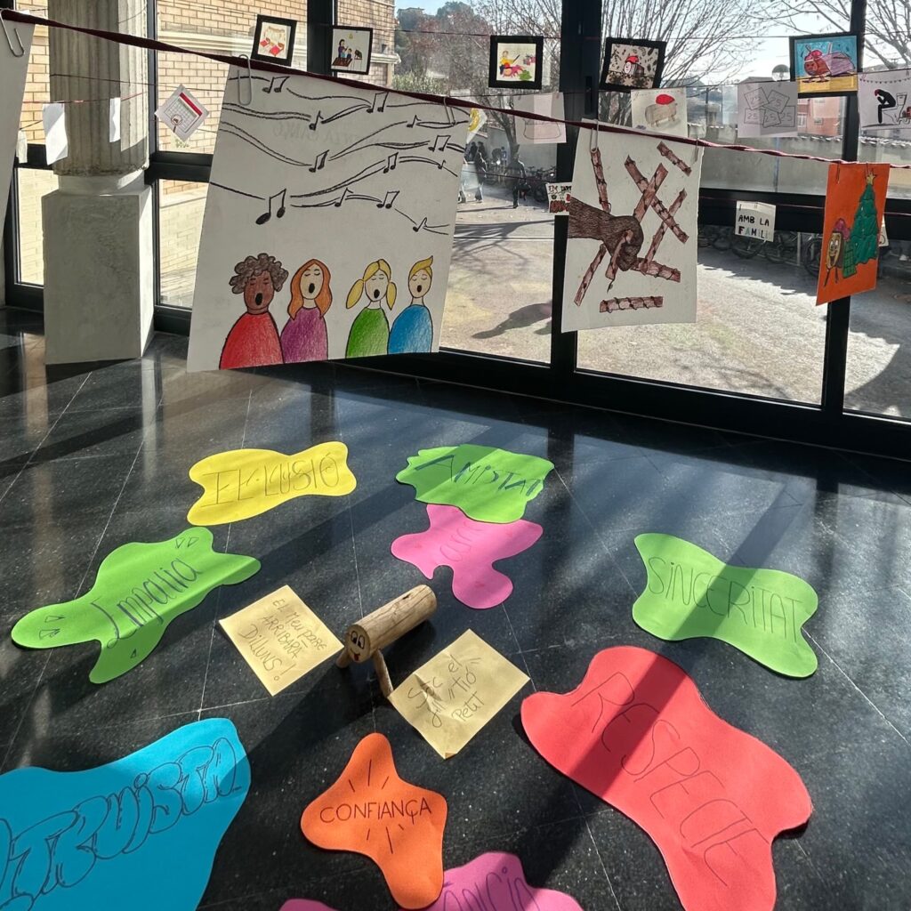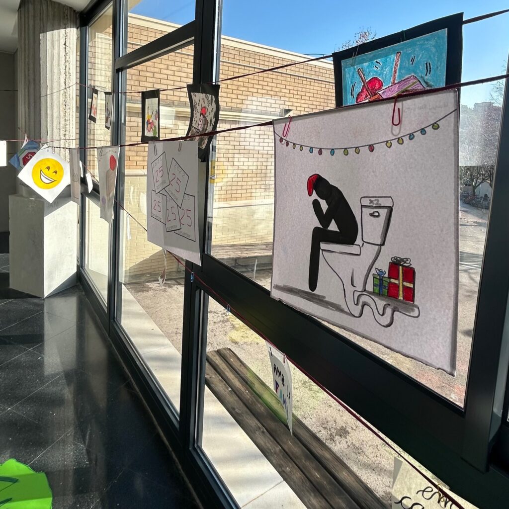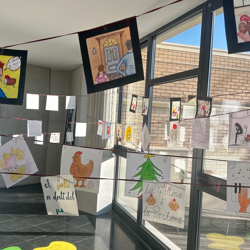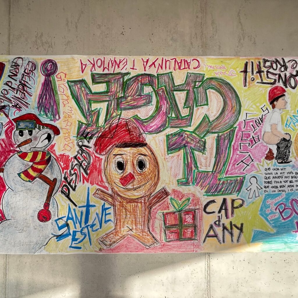 Al vestíbul del nostre institut, aquest any hi ha aparegut un tió, però no està sol: està acompanyat de les il·lustracions del seu conte, realitzades pels alumnes de Tècniques d’Expressió Graficoplàstica de 2n de batxillerat, i de la il·lustració de la lletra de la cançó del tió, realitzada pels alumnes de les optatives artístiques de 4t d’ESO.