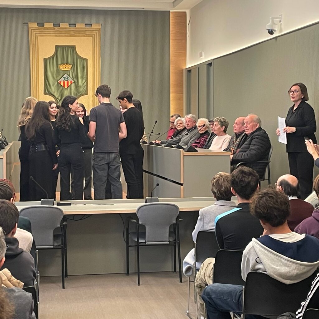 Aquest divendres 6 de febrer, l’alumnat de 1r de batxillerat d’Història del Món Contemporani i de Cor i Tècnica Vocal va participar en l’acte de col·locació de quatre llambordes stolpersteine a Banyoles, en record de quatre veïns de la ciutat deportats als camps nazis.