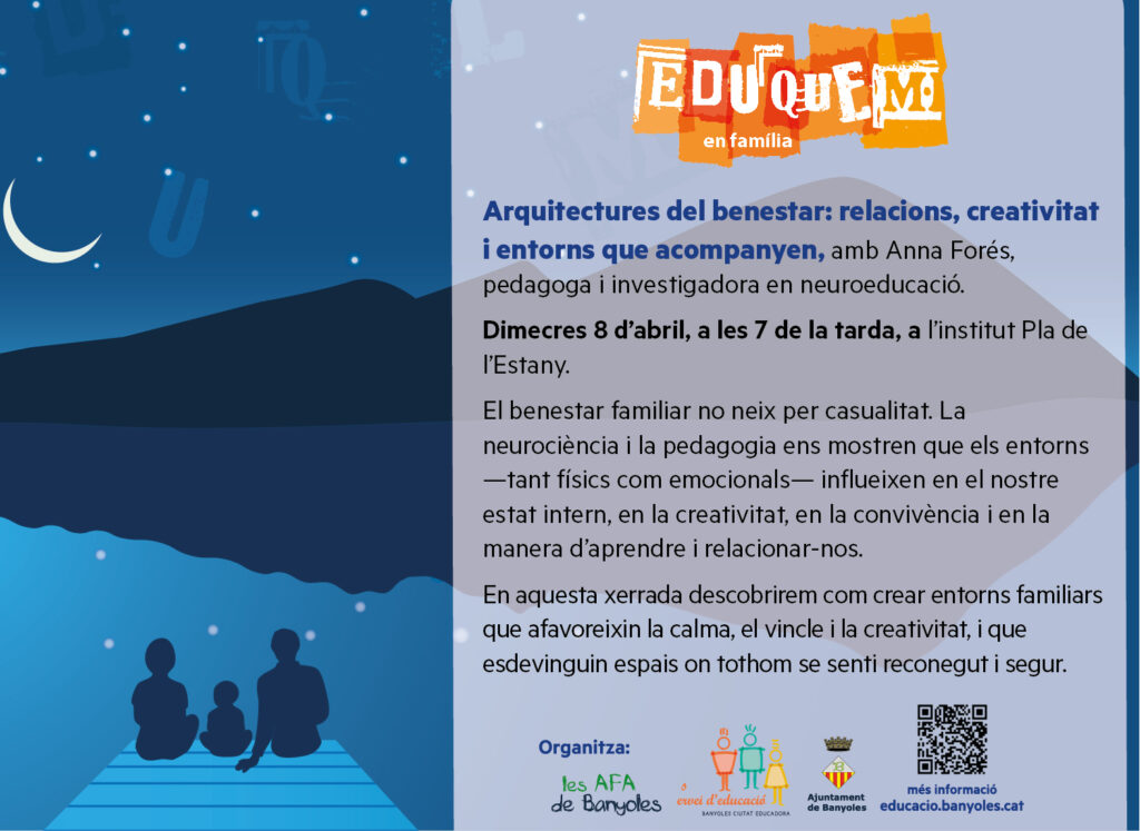 Us convidem a la propera activitat del programa Eduquem en Família, que organitzen les AFA dels centres educatius de Banyoles i el Servei d’Educació de l’Ajuntament de Banyoles, oberta a totes les famílies i persones interessades en l’educació.