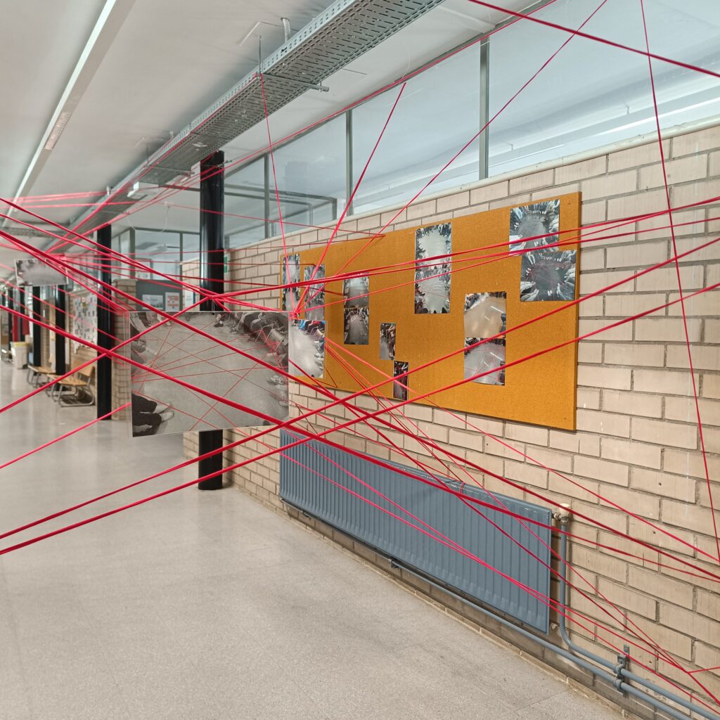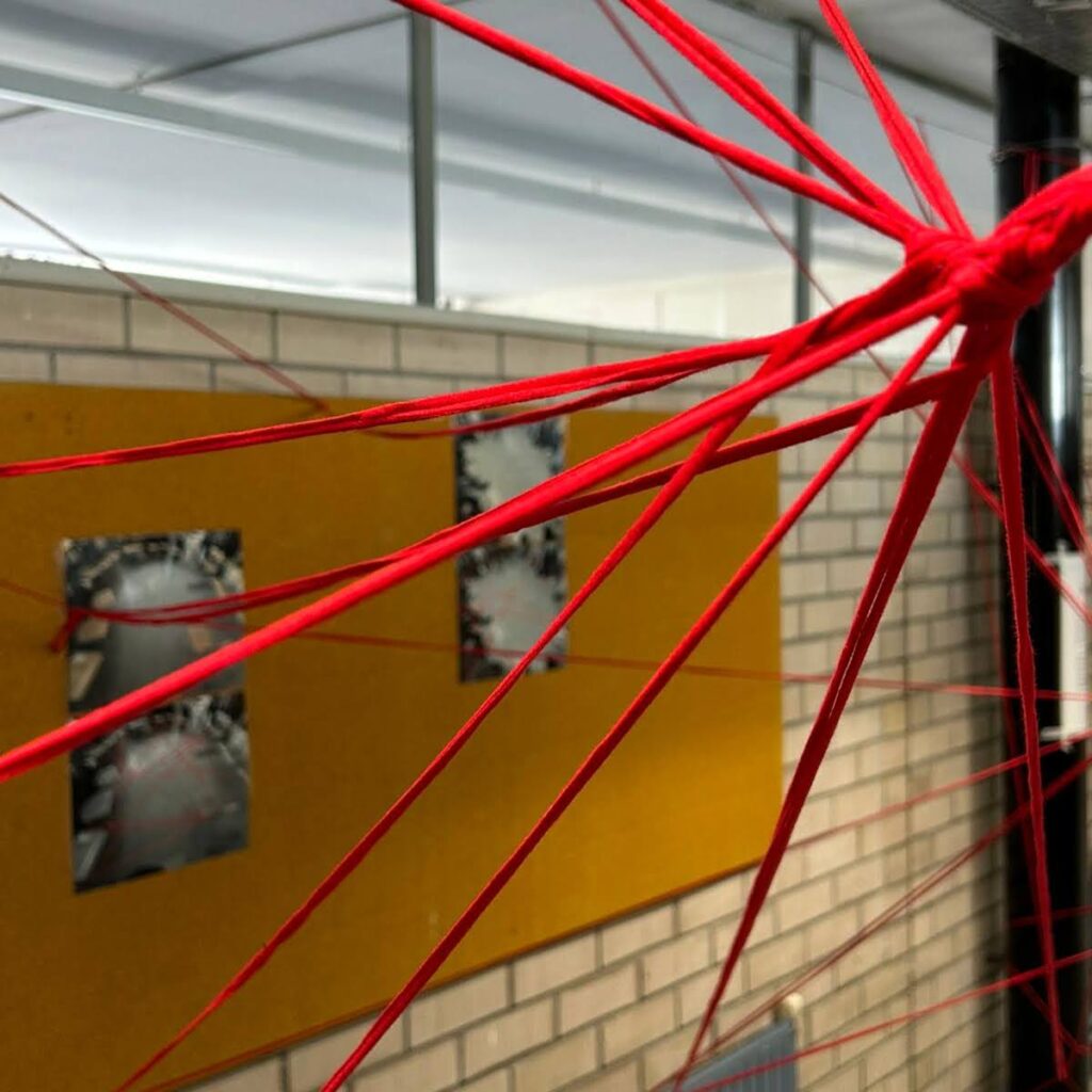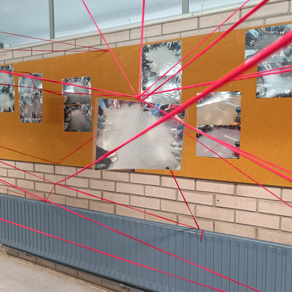 Aquest 8 de març hem estat treballant la interdependència, el suport mutu i la necessitat de donar valor a la cura amb l’alumnat de 3r i 4t d’ESO. La instal·lació obtinguda simbolitza aquestes relacions, vincles i xarxes que teixim al nostre dia a dia.