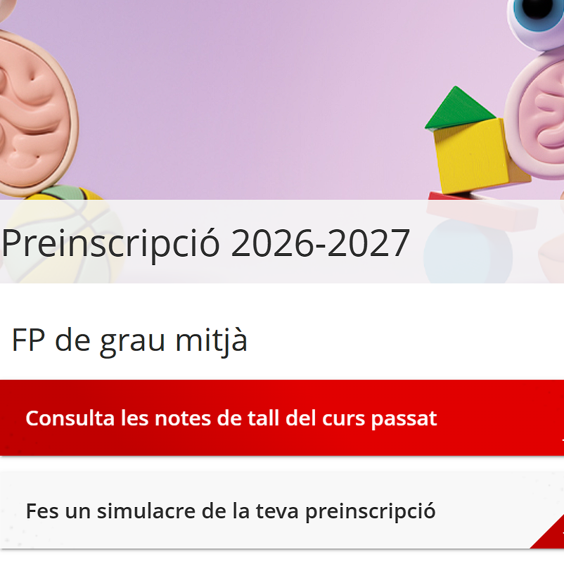 Ja es poden consultar les notes de tall d’accés del curs passat (25-26) a cicles formatius de grau mitjà i superior.