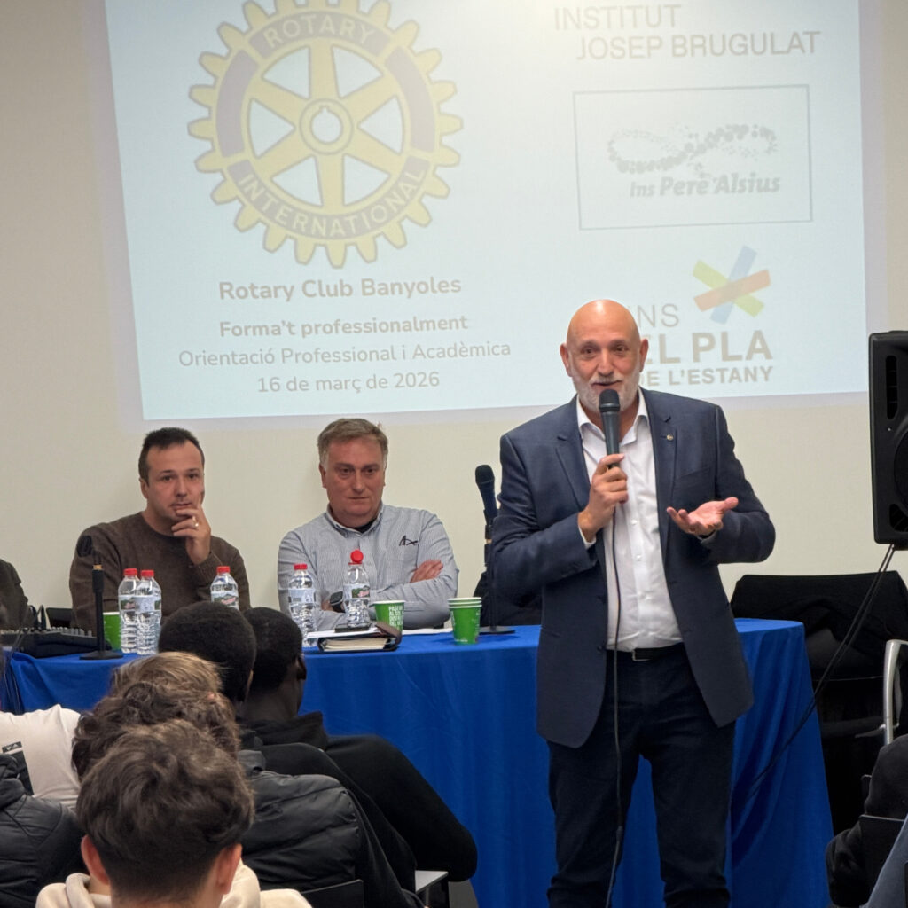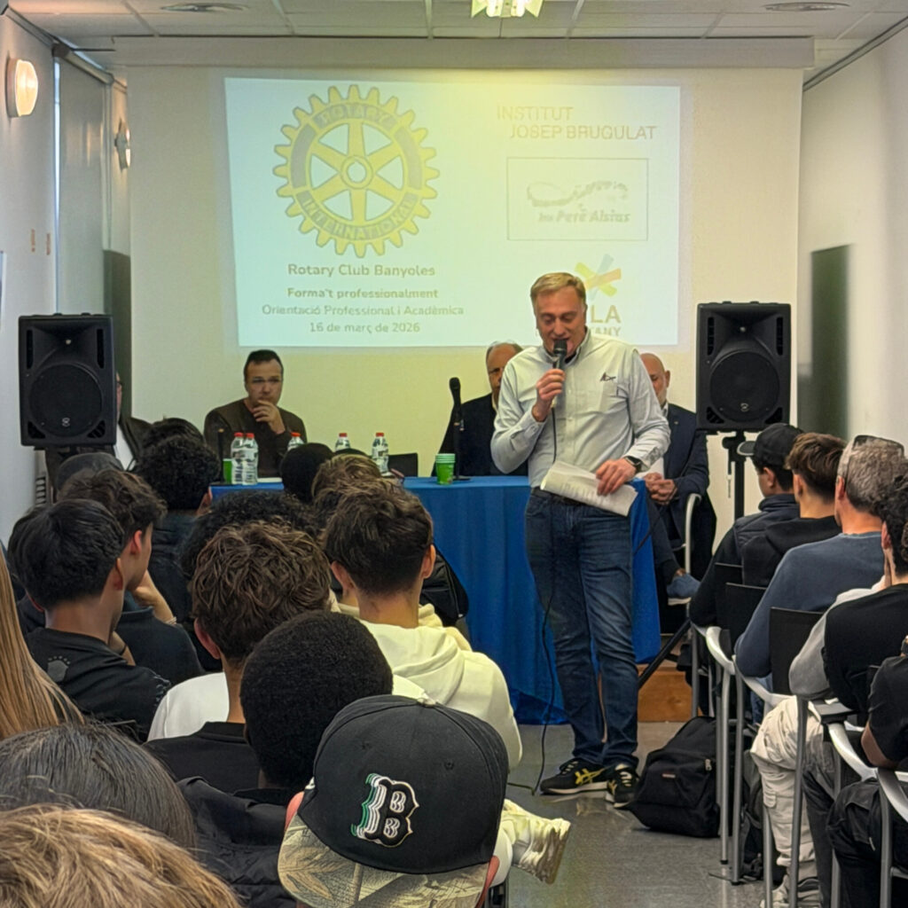 Aquest dilluns 16 de març, l’alumnat dels cicles de Gestió Administrativa, Instal·lació i Moblament i Manteniment Electromecànic ha participat en una xerrada organitzada pel Rotary Club Banyoles, en què diversos empresaris de la nostra comarca han compartit les seves experiències professionals, han explicat els seus projectes empresarials i han destacat la seva aposta per la Formació Professional com a via clau per al desenvolupament del talent i la inserció laboral.