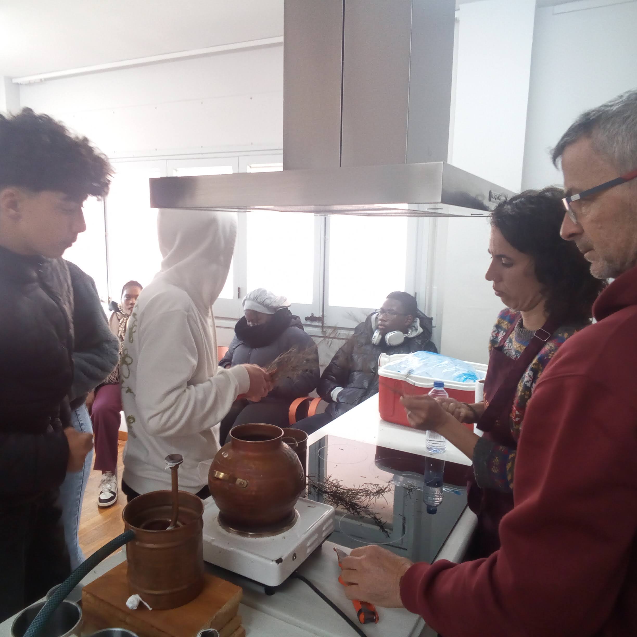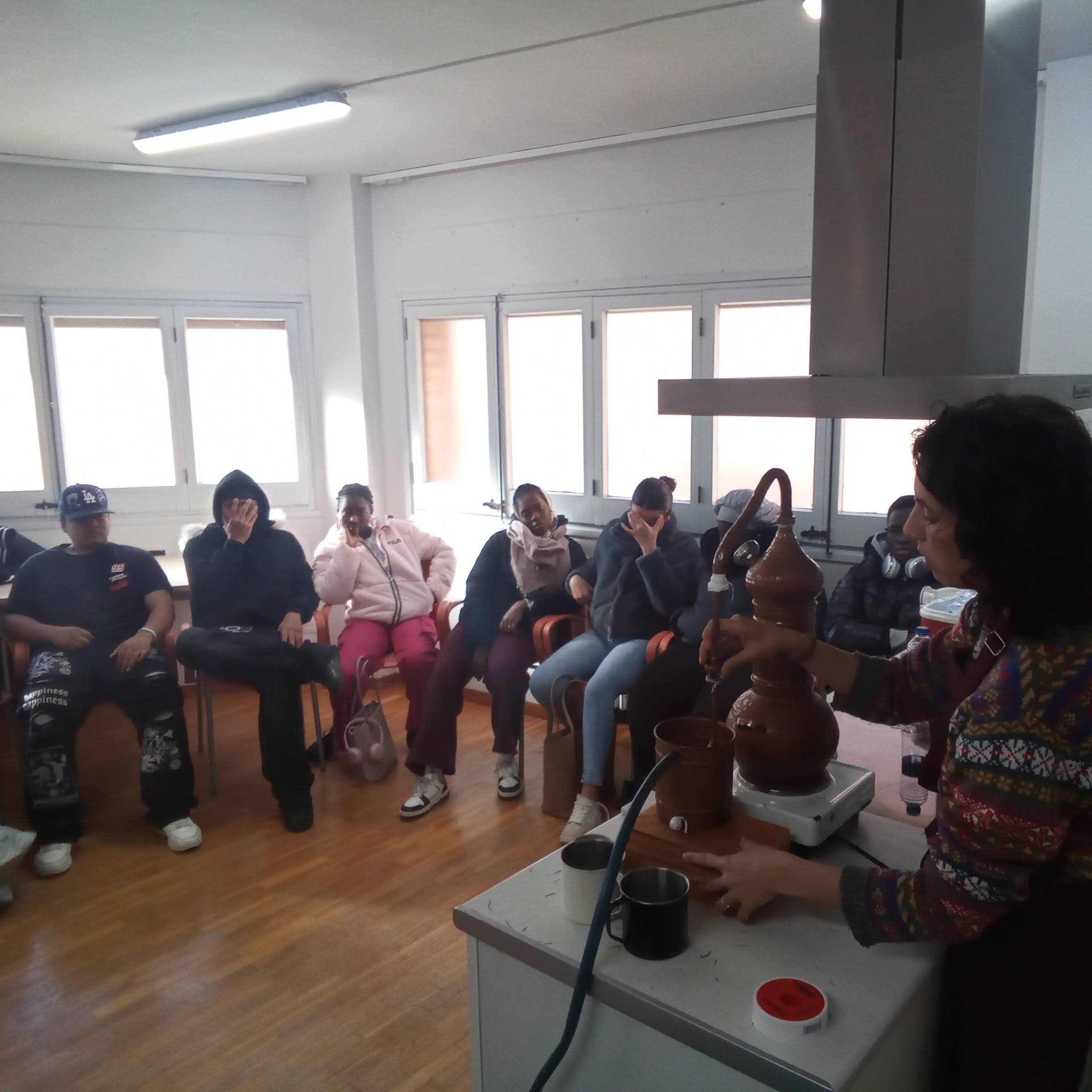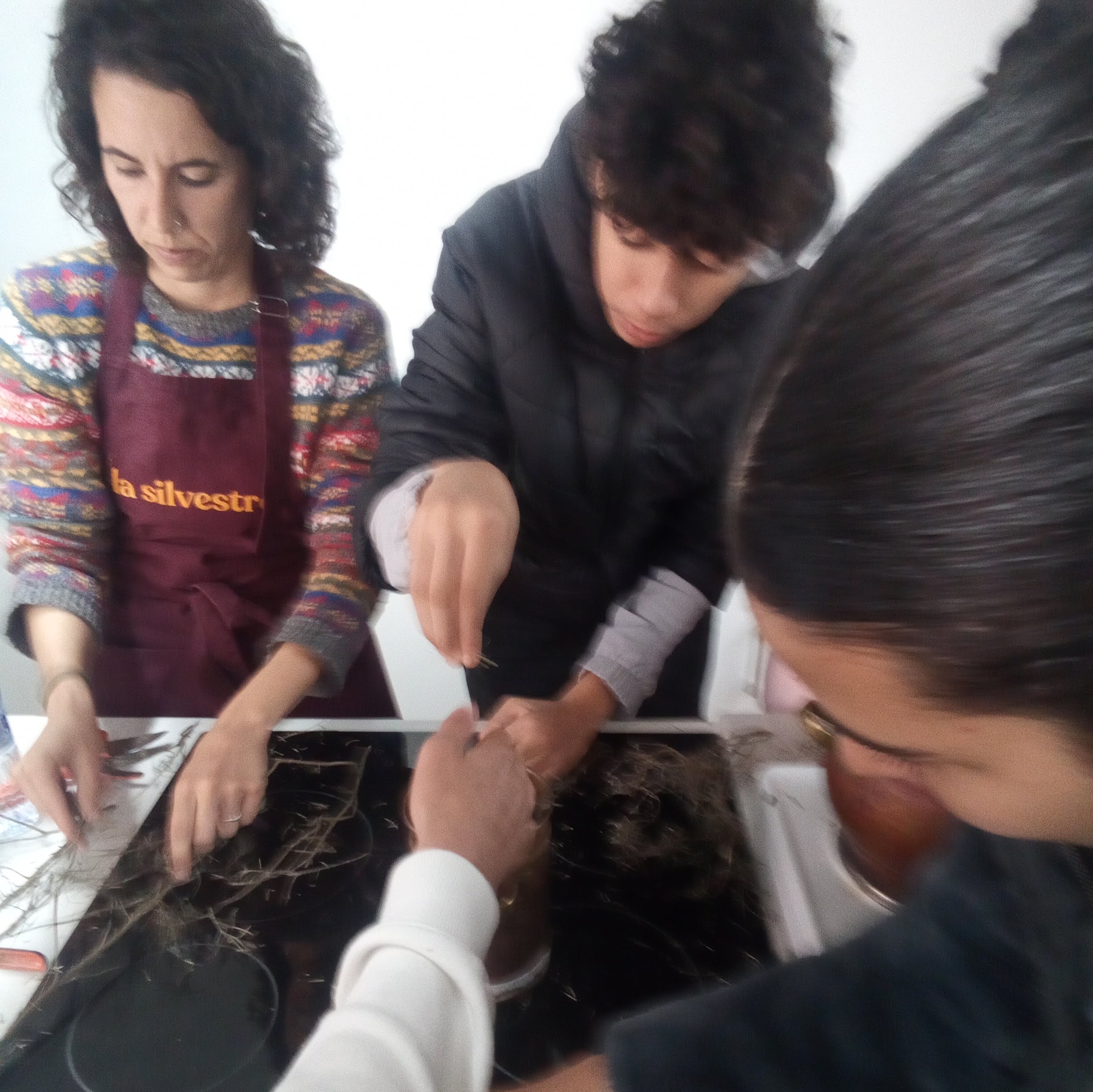 Els alumnes del PFI de Vivers i Jardins han participat en un taller d’etnobotànica a càrrec de La Silvestre, una activitat que ha combinat l’aprenentatge científic amb la manipulació de productes naturals. El taller s’ha desenvolupat en dues sessions diferenciades: en la primera, l’alumnat ha treballat la destil·lació d’hidrolat i oli essencial de romaní, planta que ells mateixos havien recol·lectat en una sortida al medi natural. Durant aquesta activitat, han conegut de primera mà el funcionament d’un alambí i el procés mitjançant el qual és possible obtenir components naturals. També han pogut identificar diversos olis essencials gràcies als seus coneixements previs sobre plantes i medicina natural.