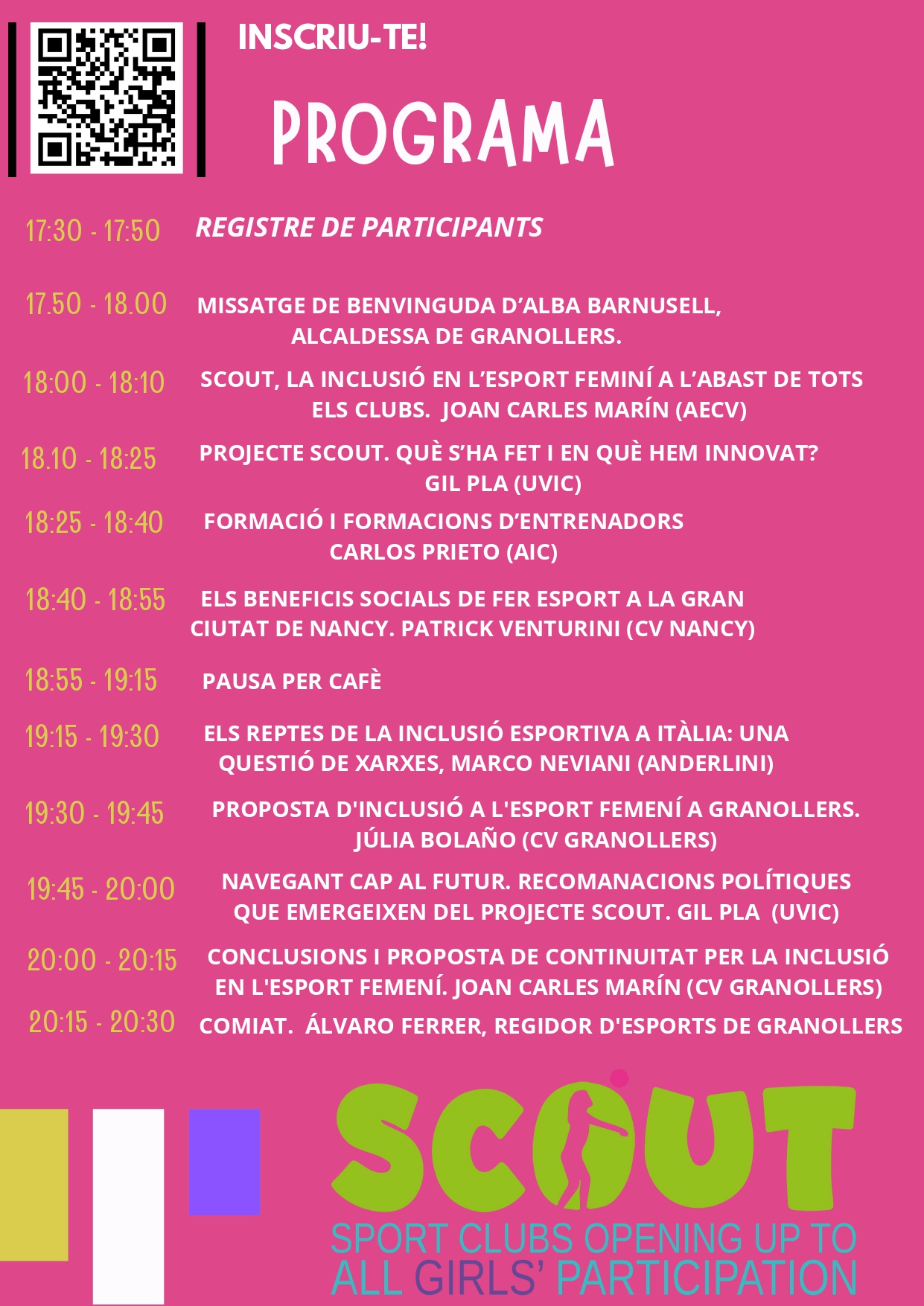 El pròxim dijous 21 de novembre a les 17:30 a l’Hotel Granollers, es durà a terme una conferència sobre el projecte “Scout”, un projecte esportiu d’inclusió en noies de voleibol.