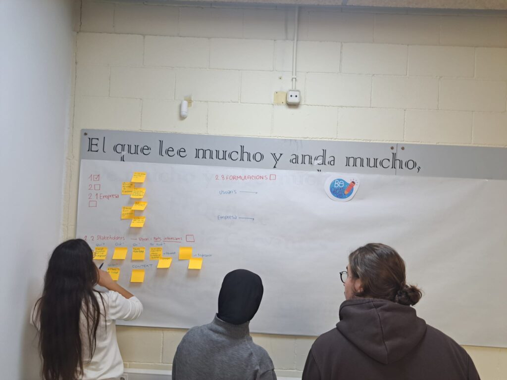 Durant aquestes 24 hores d’intens treball, els estudiants van aplicar la metodologia de Design Thinking, una eina que fomenta la creativitat i el treball en equip per resoldre problemes de manera innovadora. Els alumnes van afrontar reptes empresarials presentats per diverses empreses col·laboradores, com Rodalies de Catalunya, Imaginbank i Bon Àrea. Aquestes empreses van presentar situacions reals a través d’un repte que van permetre als estudiants enfrontar-se a casos pràctics i crear solucions innovadores.