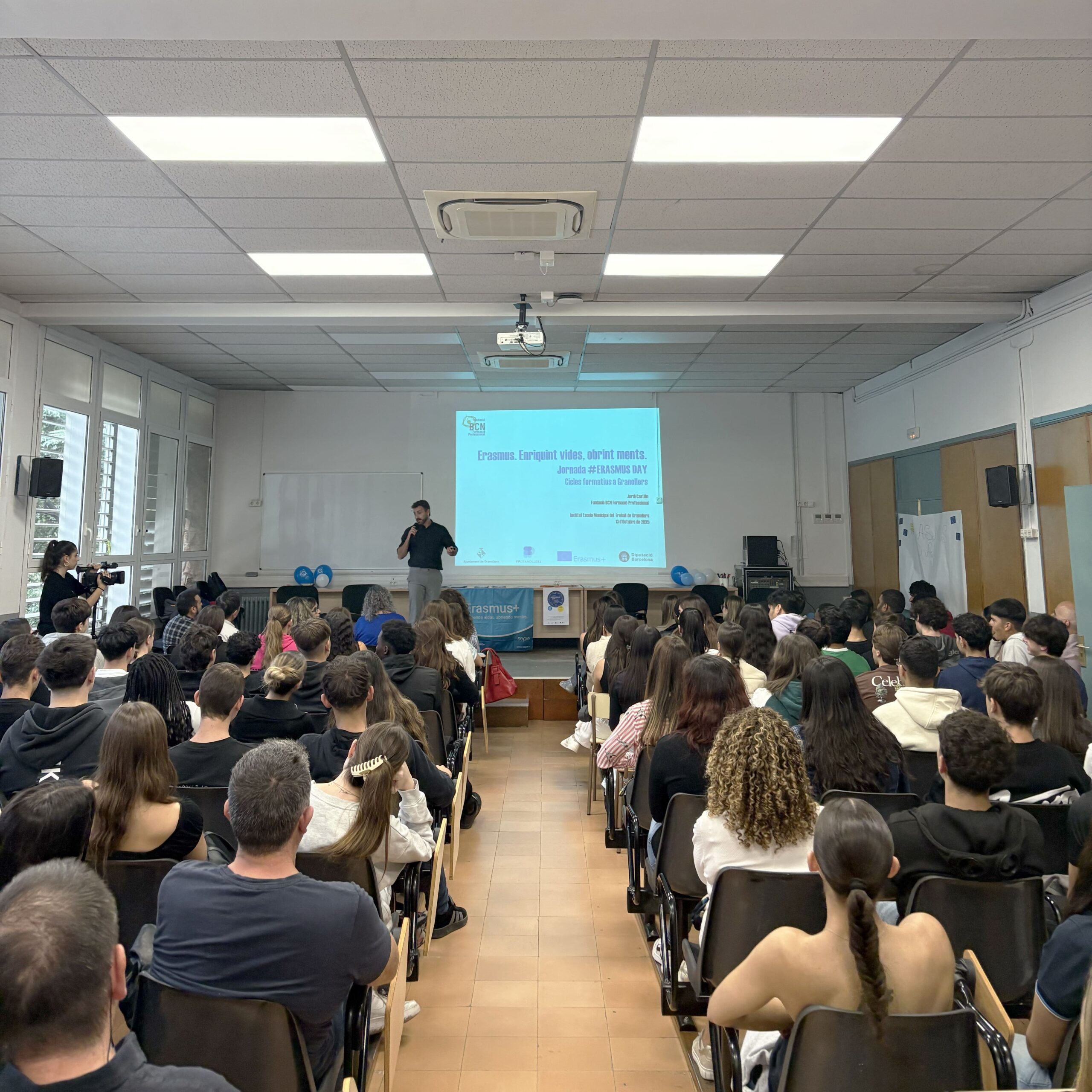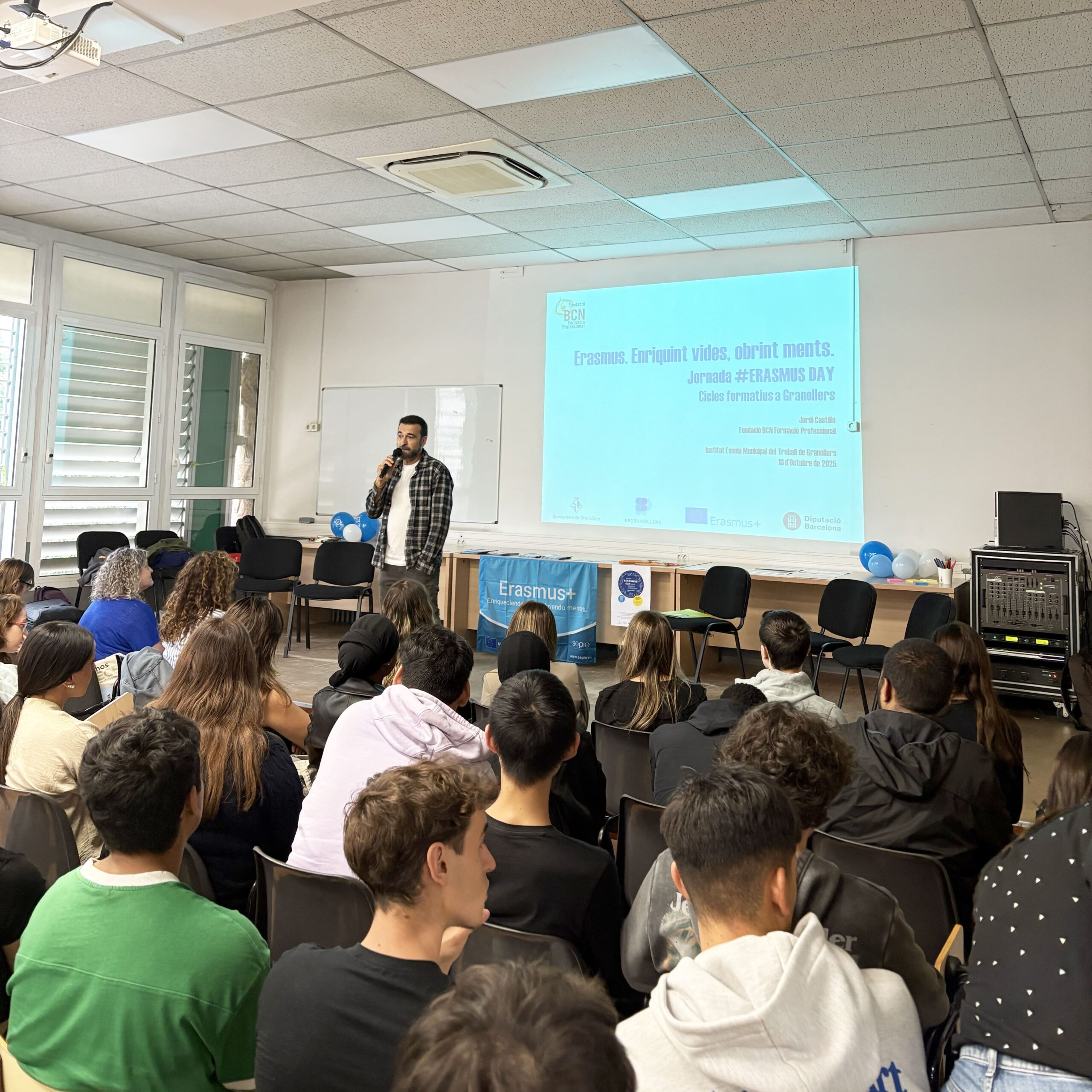 L’acte va començar amb la conferència “Erasmus: enriquint vides, obrint ments”, a càrrec de Jordi Castillo, responsable de Projectes Europeus de la Fundació Barcelona Formació Professional, que va destacar el valor transformador de les experiències internacionals en la formació i l’ocupabilitat dels joves.