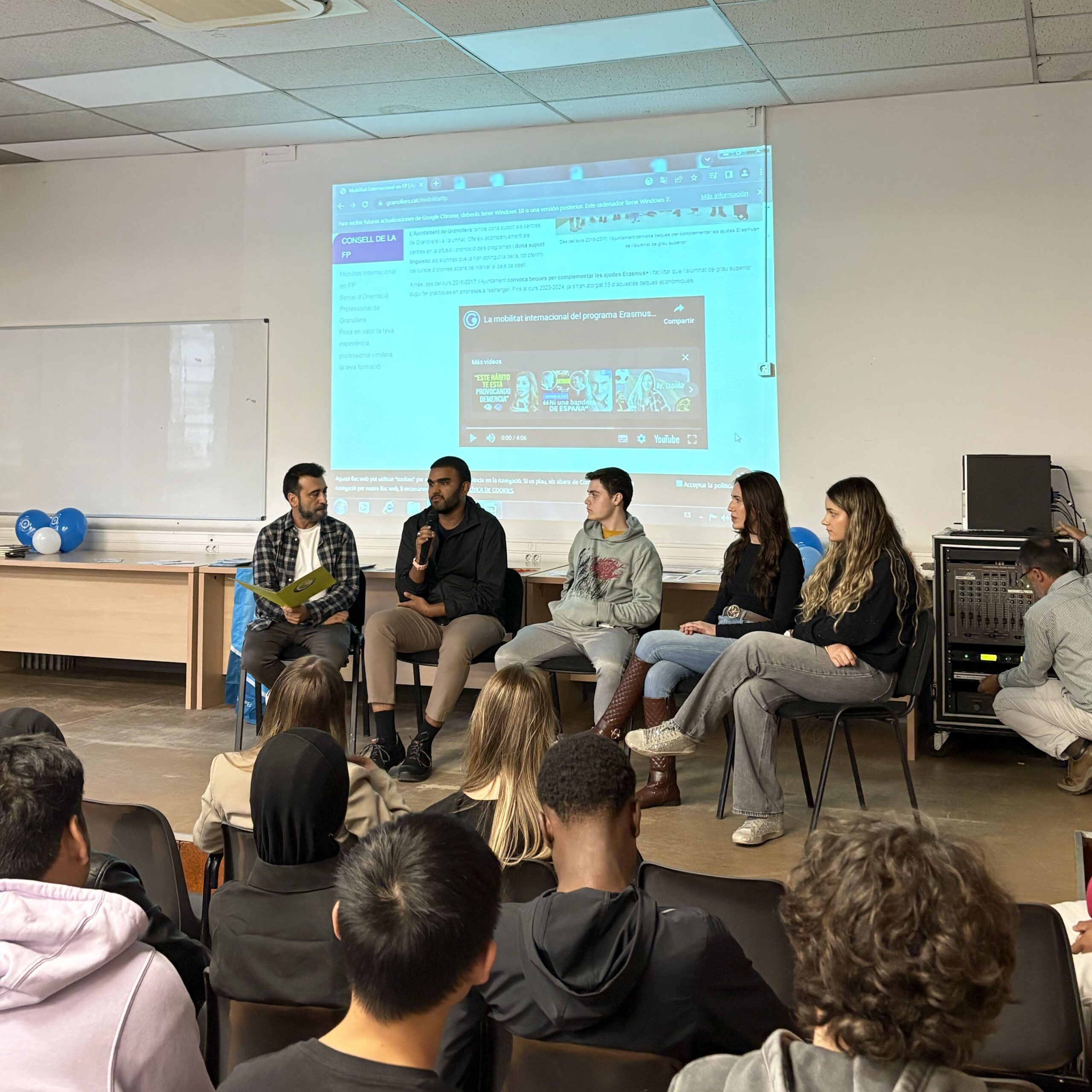 Tot seguit, es va donar pas a una taula rodona d’alumnes participants en mobilitats europees, que van compartir les seves vivències i aprenentatges després d’haver estudiat o fet pràctiques a diferents països. Per part de l’Institut Carles Vallbona hi van intervenir Muhammad Fawad, estudiant de 2n curs del CFGS de Transport i Logística, que va realitzar la seva estada a Romania, i Èric Rodríguez, alumne de 2n curs del CFGM de Gestió Administrativa (perfil sanitari), que va fer les seves pràctiques a Portugal.