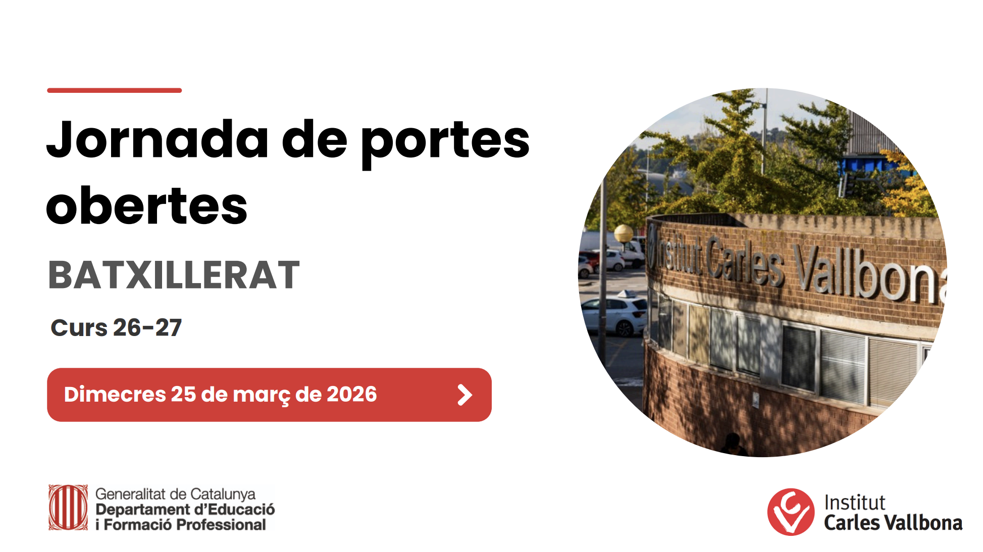 El passat 25 de març, vam celebrar les Portes Obertes 2026 dedicades al Batxillerat al nostre institut. Durant l’acte, es va presentar l’oferta formativa, el funcionament de centre i la informació sobre la preinscripció per al curs vinent.
