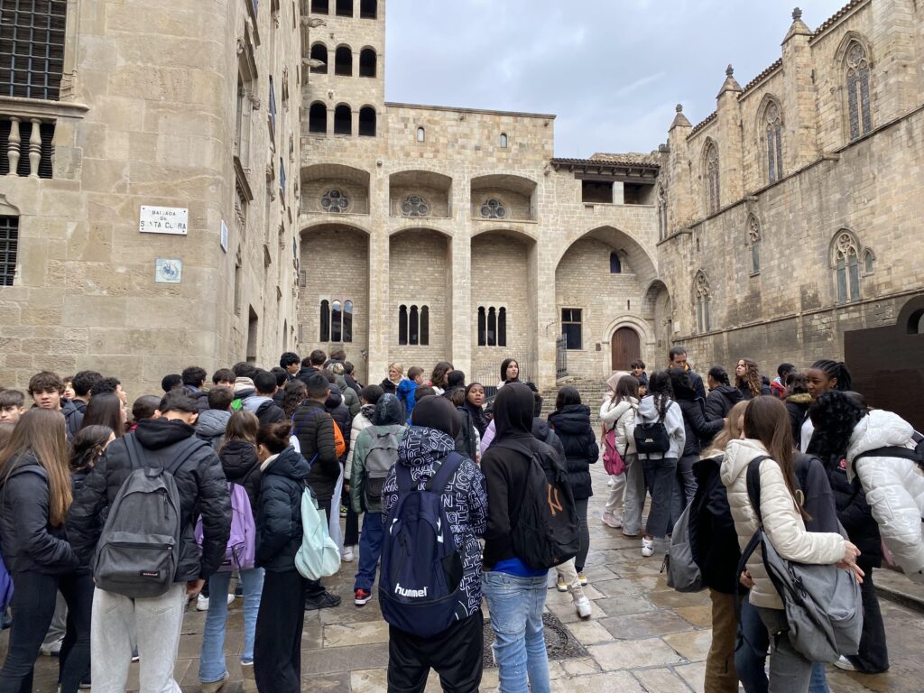 El passat dijous 12 de desembre, els alumnes de 2n d’ESO van visitar el Museu d’Història de Barcelona (MUHBA). La sortida va començar a la Plaça del Rei, on van descobrir com es va formar la Barcelona medieval. Aquest espai històric va permetre veure als alumnes com la ciutat es va convertir en un centre polític i comercial important.