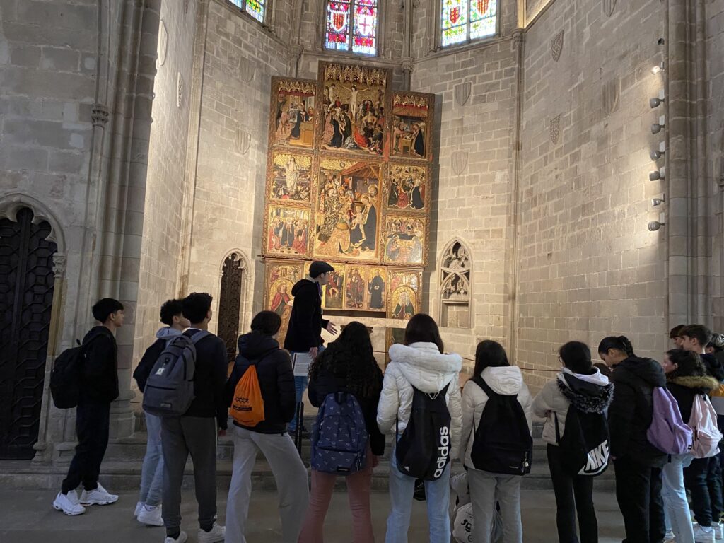 El recorregut va incloure el Palau Reial Major, el Saló del Tinell i la capella de Santa Àgata. A continuació, els alumnes van recórrer el carrer de l’Argenteria, el passeig del Born i Santa Maria del Mar. Aquesta zona de la ciutat els va permetre comprendre com funcionaven els gremis i l’organització de la ciutat.