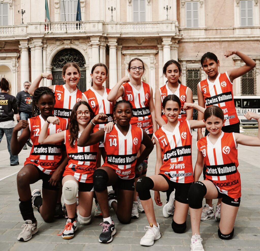 Espectacular experiència la viscuda pels equips del Vallbona al torneig més important d’EUROPA de voleibol que s’ha celebrat a Módena aquests dies de Setmana Santa. Tots els equips han competit i jugat partits internacionals i cal destacar la participació de l’equip aleví entrenat per Juana i Aina que han quedat terceres classificades perdent només un partit contra l’equip campió.