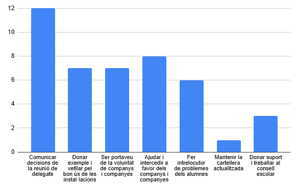 Els alumnes escollits de delegats van ser: el Damià Anfruns (2n A), l’Ona Muns (2n B) i la Naia Farré (2n C); I els de convivència: Oleguer Noguera (2n A), l’Eloi Mill (2n B) i la Ivet Sabata (2n C)