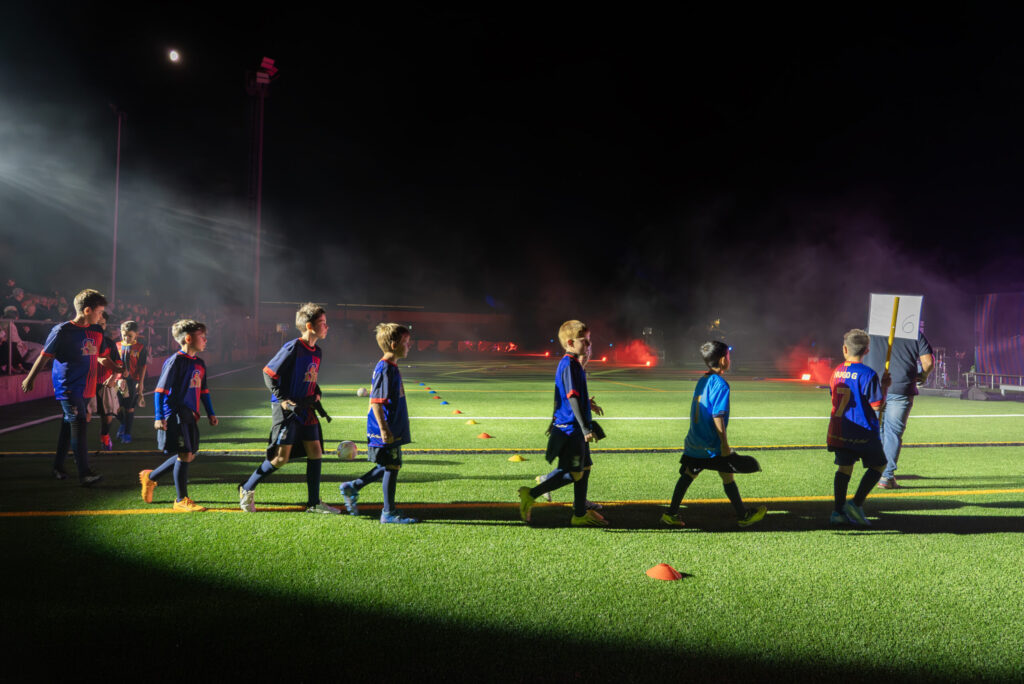 L’acte va tenir lloc al Camp Municipal de Prats de Lluçanès i es va iniciar presentant els més de 287 jugadors i jugadores, que formen un total de 20 equips, des de l’escoleta i iniciació fins a les veteranes i l’equip d’aficionats. La major part d’aquests jugadors i jugadores són o van ser alumnes del nostre institut.