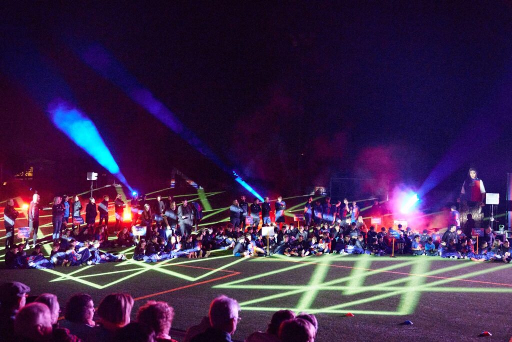 Per finalitzar l’acte, la coral “Sant Jordi” de Prats de Lluçanès, amb ajuda de l’EMAL, tres voluntaris solistes i altra gent del poble que va voler col·laborar, ens varen presentar l’himne del club. Per acabar de rematar, ens van acompanyar uns focs artificials blaugranes, els colors que tant ens agraden!