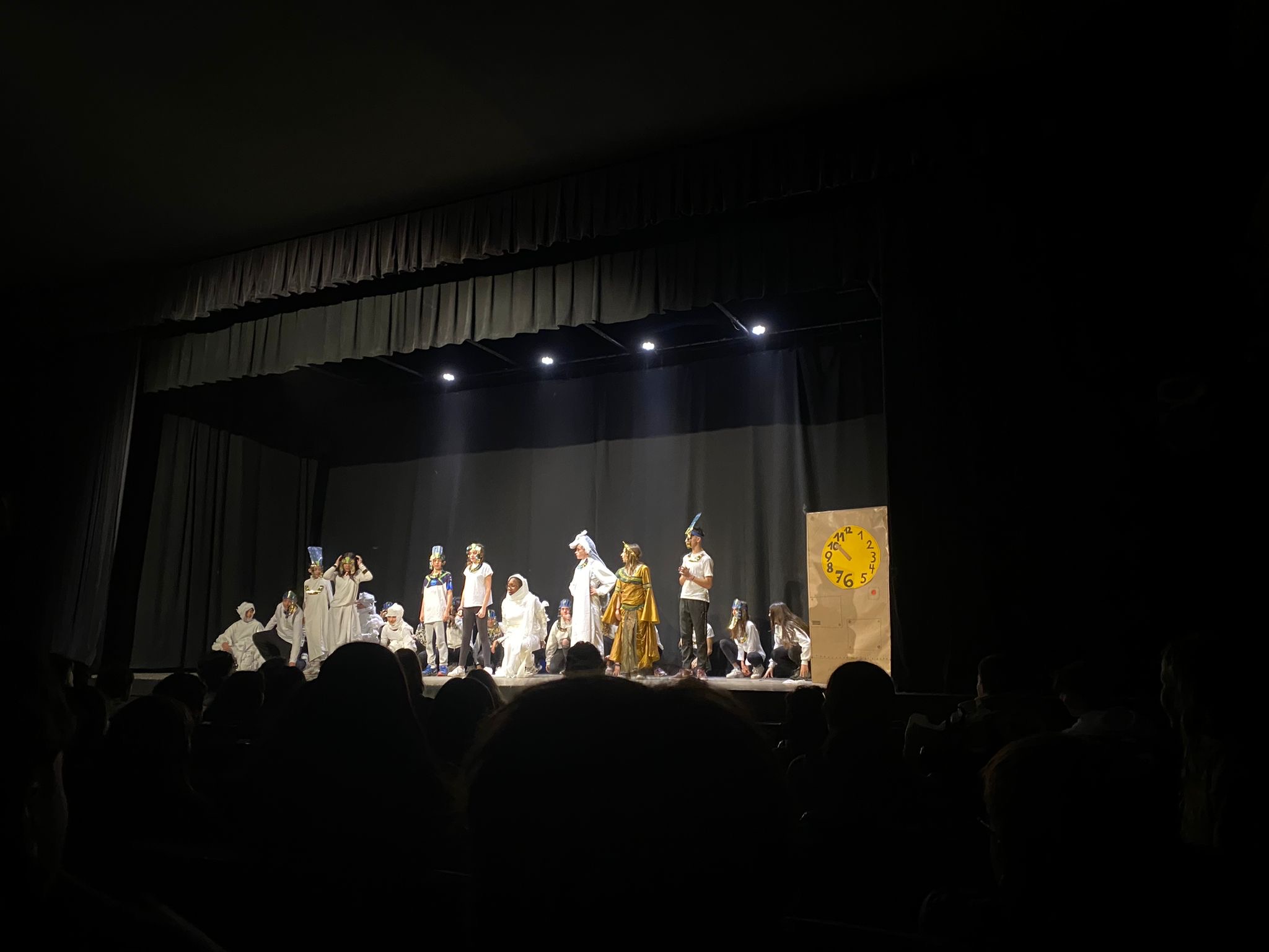 Una vegada allà, l’espectacle va començar dinamitzat per segon de Batxillerat. Cada grup classe representava una època diferent de la història de la humanitat, i va fer la seva actuació en un ordre cronològic. Aquestes actuacions van ser valorades per una part anònima del professorat.