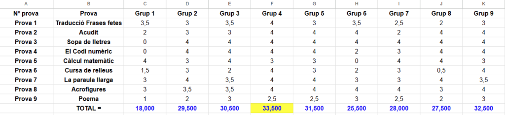 Els guanyadors van ser els que van obtenir la millor puntuació; el premi: una bossa de llaminadures per cada membre de l’equip.