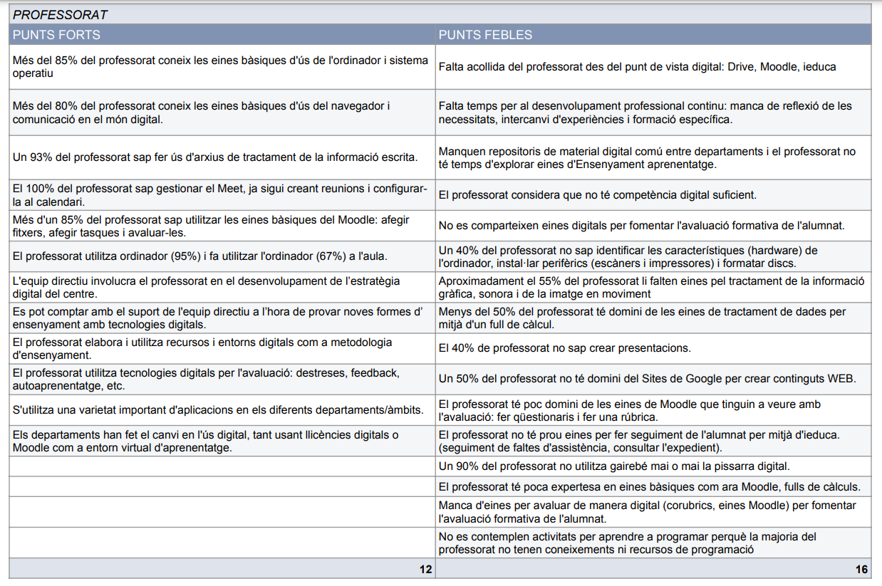 Per obtenir les següents conclusions s’ha realitzat un Selfie al professorat, un qüestionari i s’han recollit valoracions al llarg del curs del claustre.