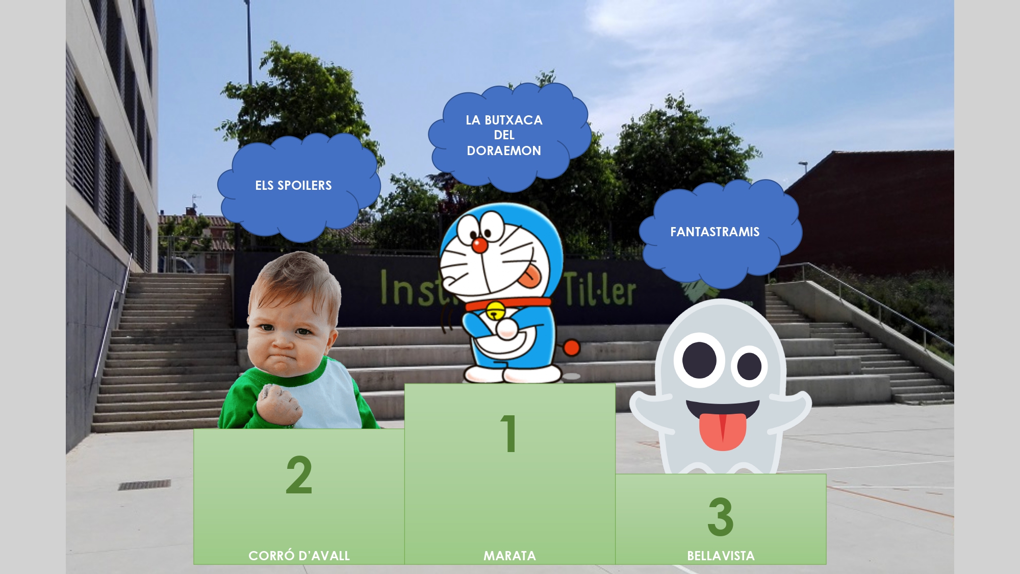 Municipi de Les Franqueses del Vallès… ja tenim els equips guanyadors del crèdit de sÃntesi de 1r d’ESO!!!! Compartim el podi amb la classificació. Sembla ser que el senyor Basswood ho seguirà tenint difÃcil per triar, ja que han sortit propostes molt i molt bones!!! Ens ha comentat que en els propers dies els equips impulsors rebran un correu electrònic amb la proposta final… serà acceptada per l’alcalde?