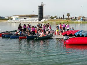 El passat 1 d’abril l’alumnat de 3r d’ESO va participar en una activitat organitzada per l’àmbit d’educació física al canal olímpic de Castelldefels consistent en fer barca de rem, caiac i canoa. Alguns van acabar una mica remullats, però el temps va acompanyar i això va afavorir que poguessin gaudir d’una bona experiència fent activitats a la natura.