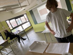 Els i les alumnes de 4t B estem treballant el projecte de l’habitatge. A les classes de tecnologia hem dissenyat la nostra casa de 50m2 aproximadament en una aplicació en lÃnia. A continuació, hem representat la seva planta a escala 1/25 en un full DIN A3 amb la finalitat de muntar la maqueta utilitzant cartró ploma. Mireu que bé ens està quedant! Una vegada tinguem la maqueta, passarem a fer la instal·lació elèctrica.