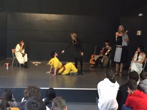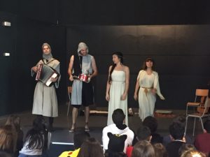 Després de llegir els episodis amorosos del Tirant lo blanc, els nostres alumnes de 1r de batxillerat van poder assistir a la representació d’una adaptació de l’obra de Joanot Martorell i un posterior col·loqui a càrrec de la companyia Nyiguit al nostre centre. A més, dos alumnes van participar voluntàriament de l’actuació i van contribuir a l’humor de la posada en escena.