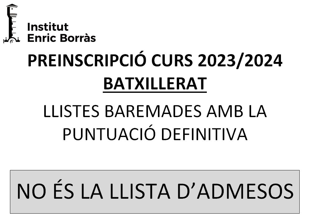 Informació per a l’alumnat que farà 2n de Batxillerat el curs vinent.