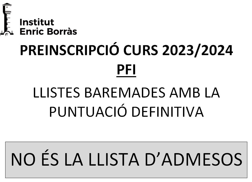 Us posem les llistes baremades definitives de l’alumnat de Batxillerat i PFI.