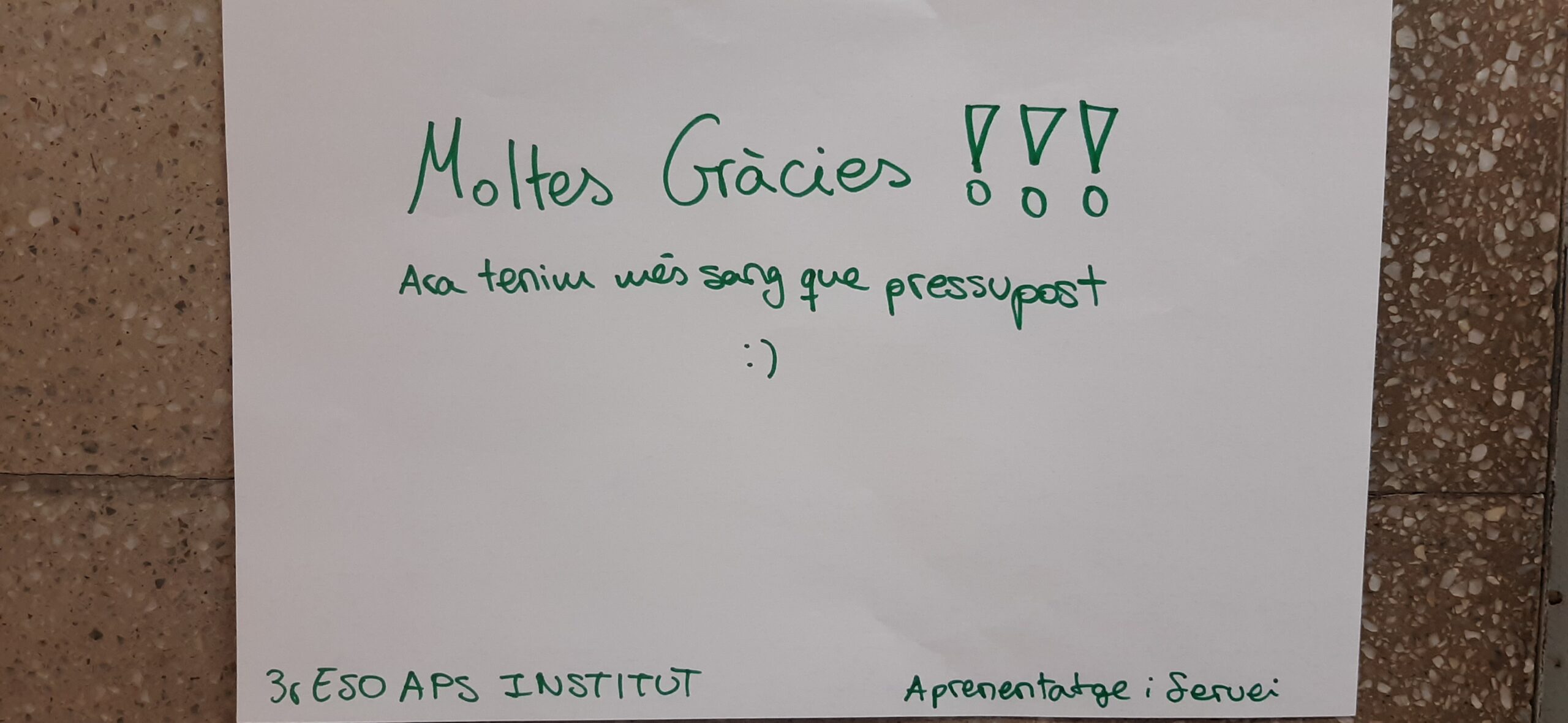 Des del centre volem agrair de tot cor la solidaritat de totes les persones participants. Cada donació ajuda a salvar vides.