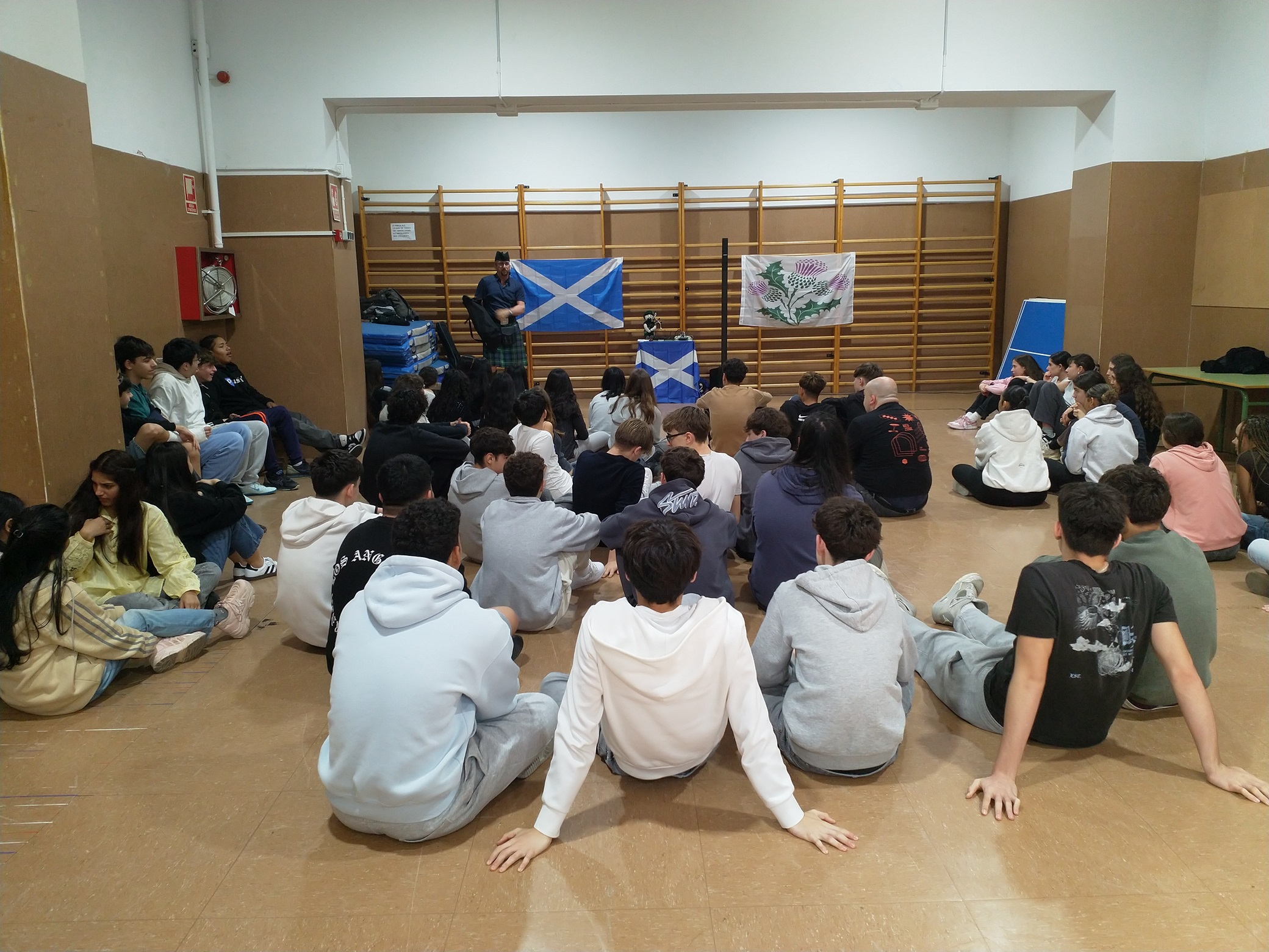 Last Friday 27 February the students of 4th ESO participated in the activity “Scottish Dances” organized by the English Department. One more year we danced, had a few laughs and celebrated a”Ceilidh” led by performer David Vivanco, whom, once again, we thank for his passion and positive energy when transmitting these Scottish traditions.