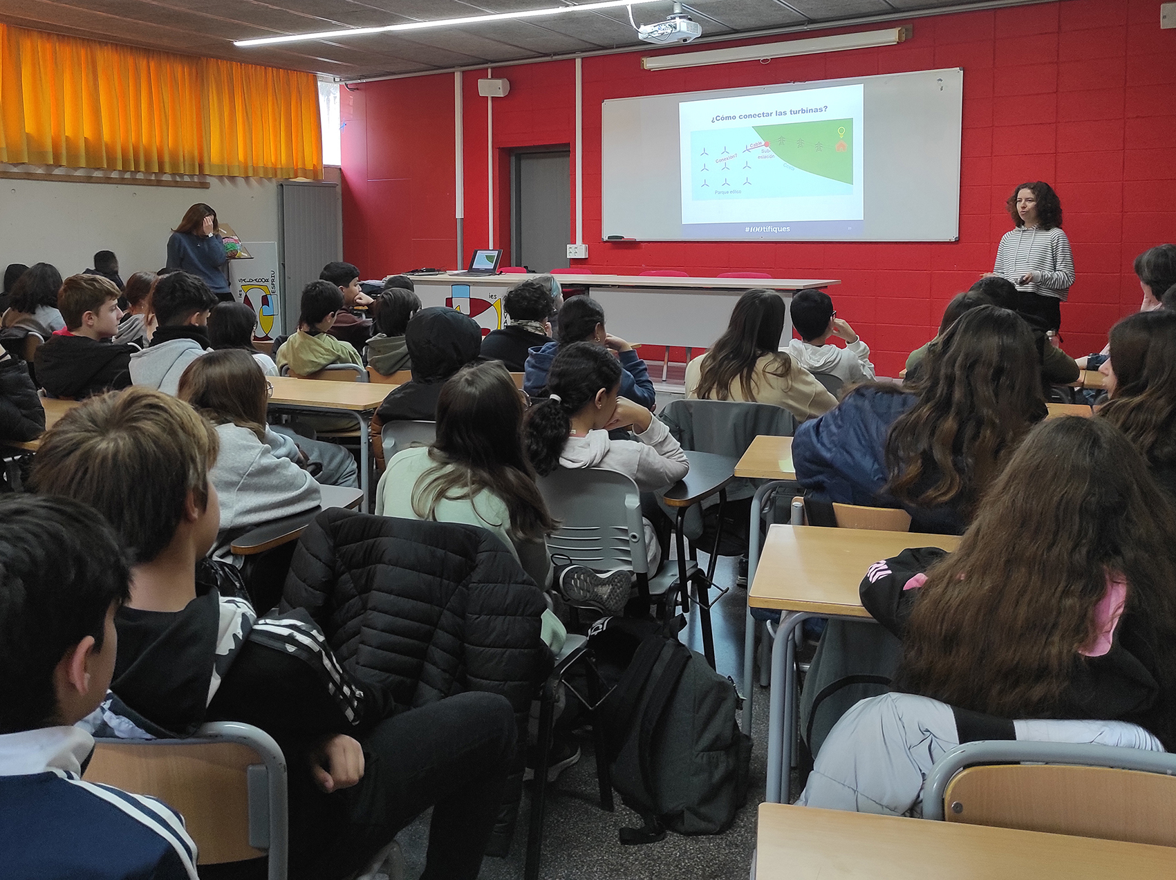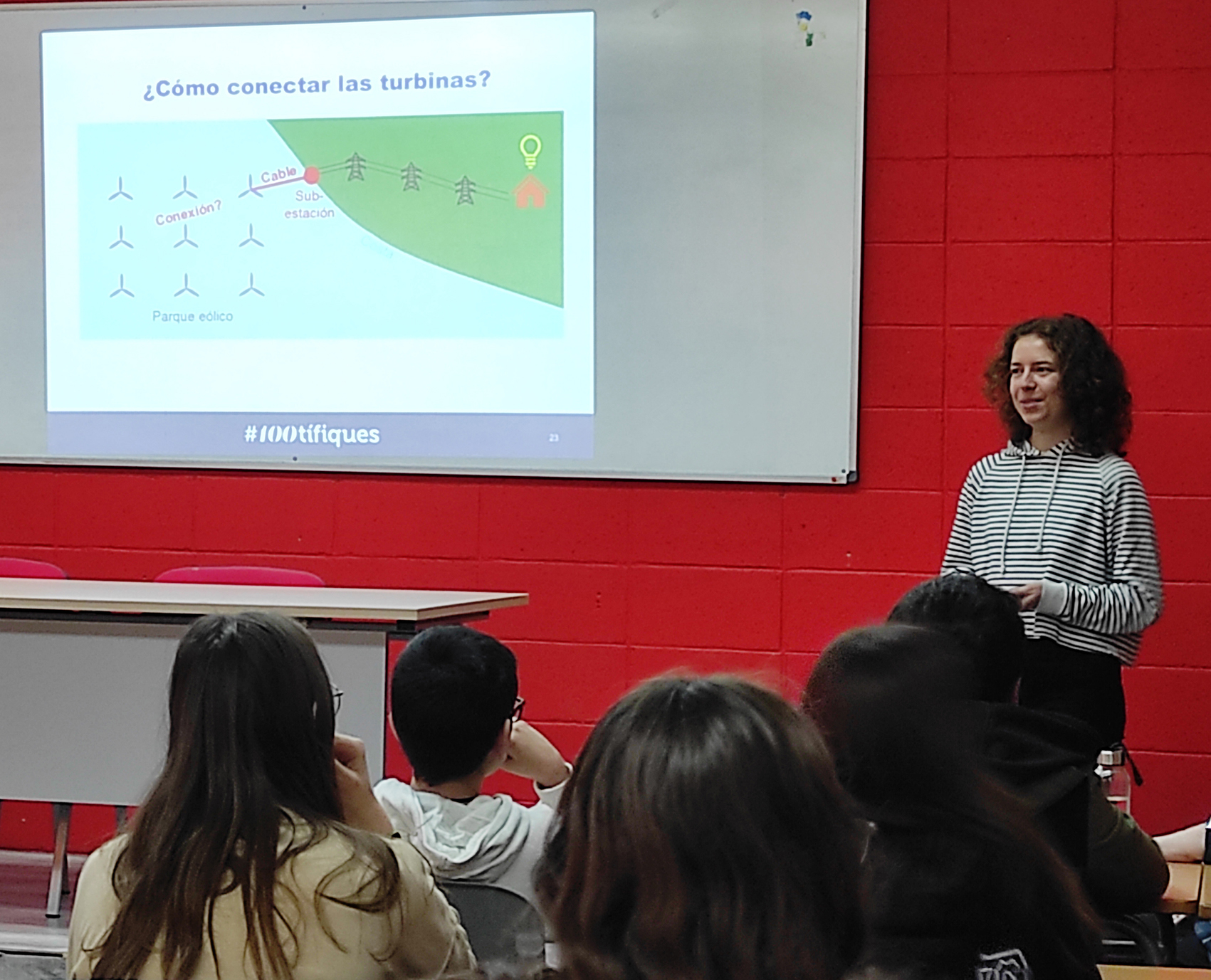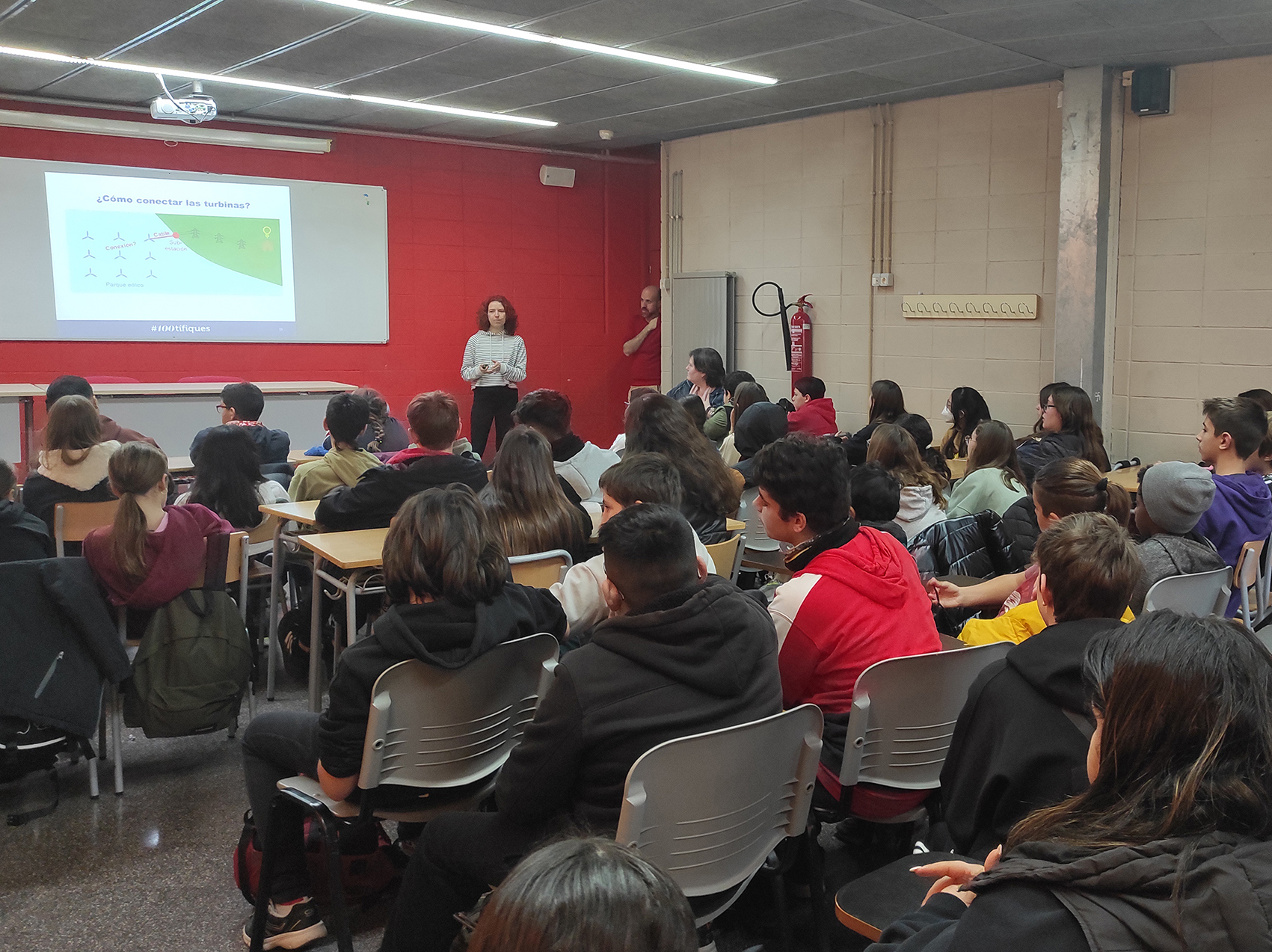 Vam rebre la visita de la Sina Montag, científica alemanya que treballa al institut IREC, que ens va explicar la seva activitat professional en aquest centre de recerca en energies renovables i la seva experiència com a científica. Va resultar molt interessant i l’alumnat va estar molt participatiu, fent-li un munt de preguntes.