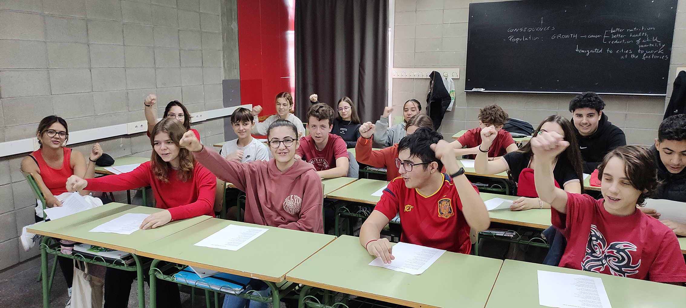 Activitat interdisciplinar entre Ciències Socials i Música: l’alumnat de quart d’ESO rep la visita inesperada del professor de Música i el seu piano electrònic, treu les partitures, entrem en context i… Tots junts cantem una cançó del musical Els Miserables com a cloenda de les Revolucions burgeses dels segles XVIII i XIX. Una experiència força motivadora!