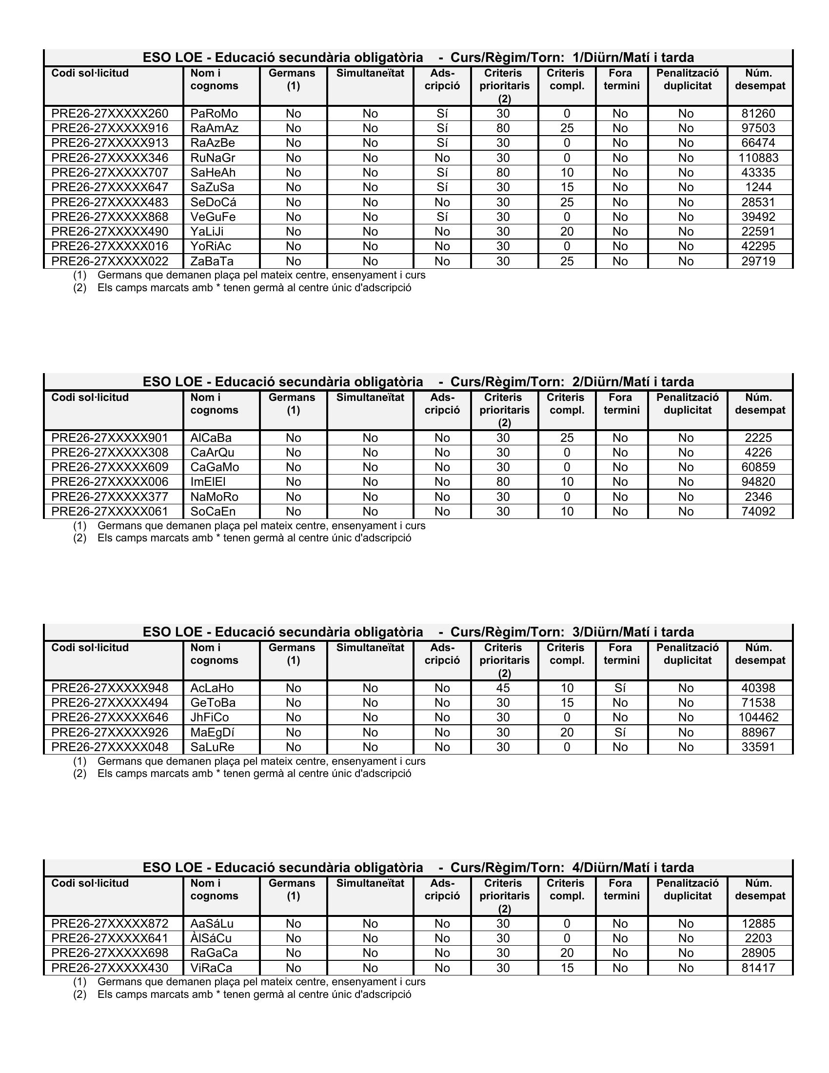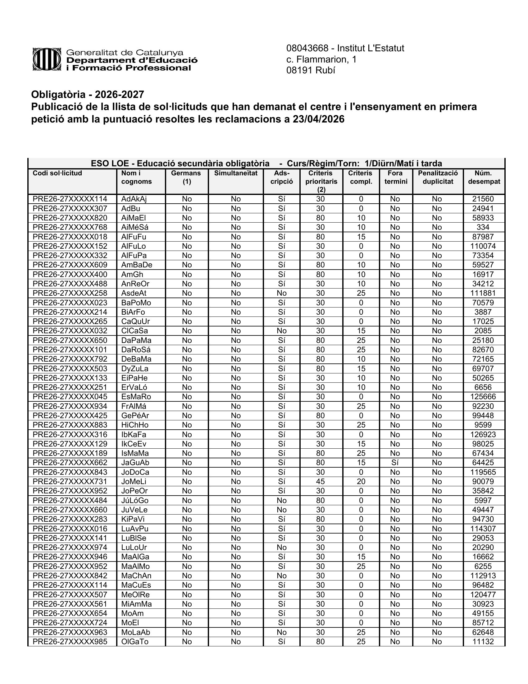 Ahir dijous 23 d’abril es va publicar el llistat d’ESO baremat un cop resoltes les reclamacions, a continuació el podeu consultar: