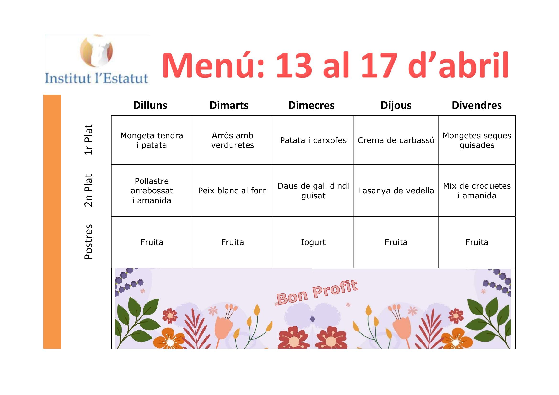 - L’horari del servei de menjador és de 14:40h a 16:30h.