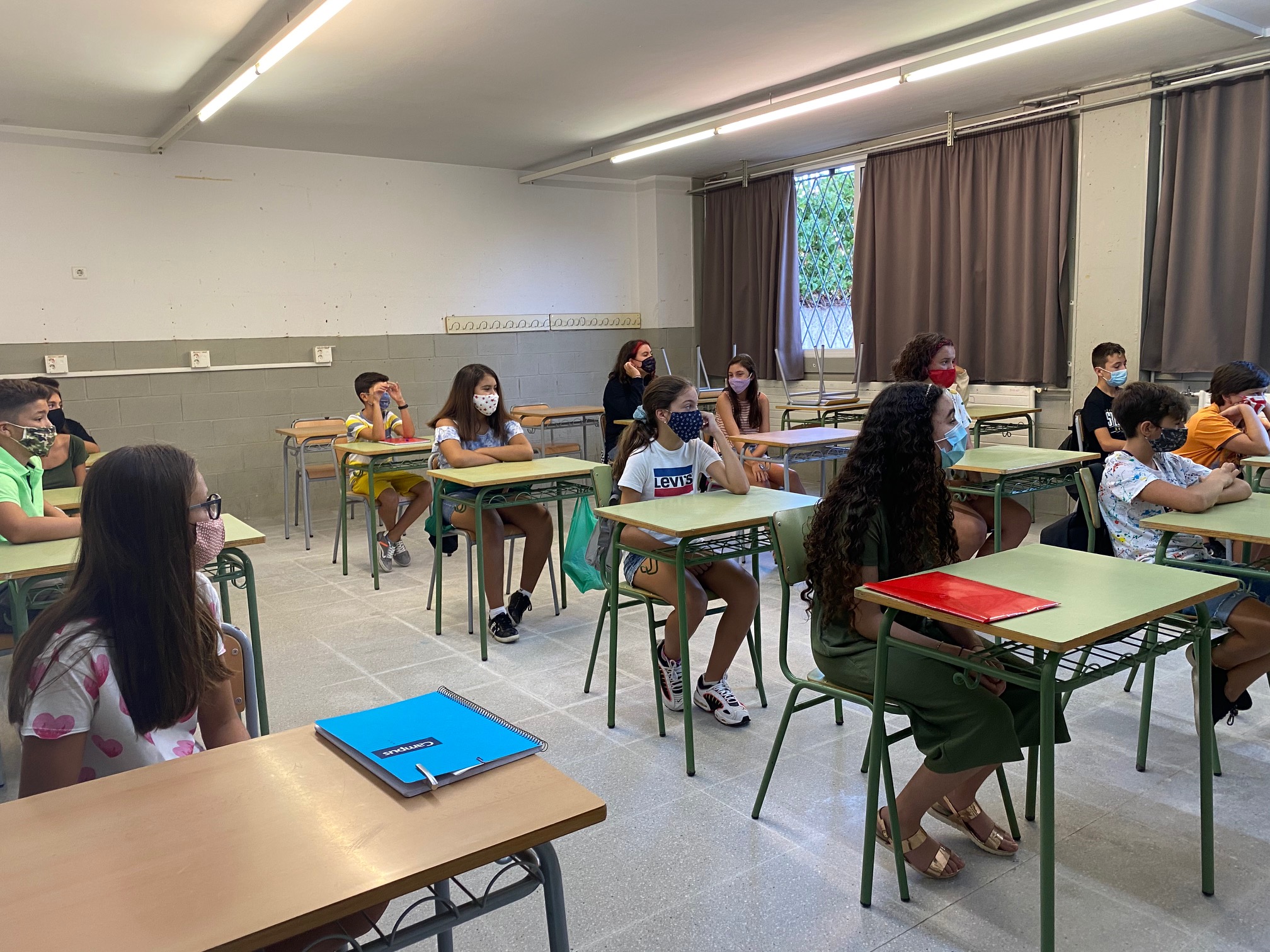Els primers en entrar han estat els alumnes de 1r d’ESO, que estrenen nova etapa en una situació gens ideal, però que entre tots farem que sigui fàcil, segura i amb grans aprenentatges.
