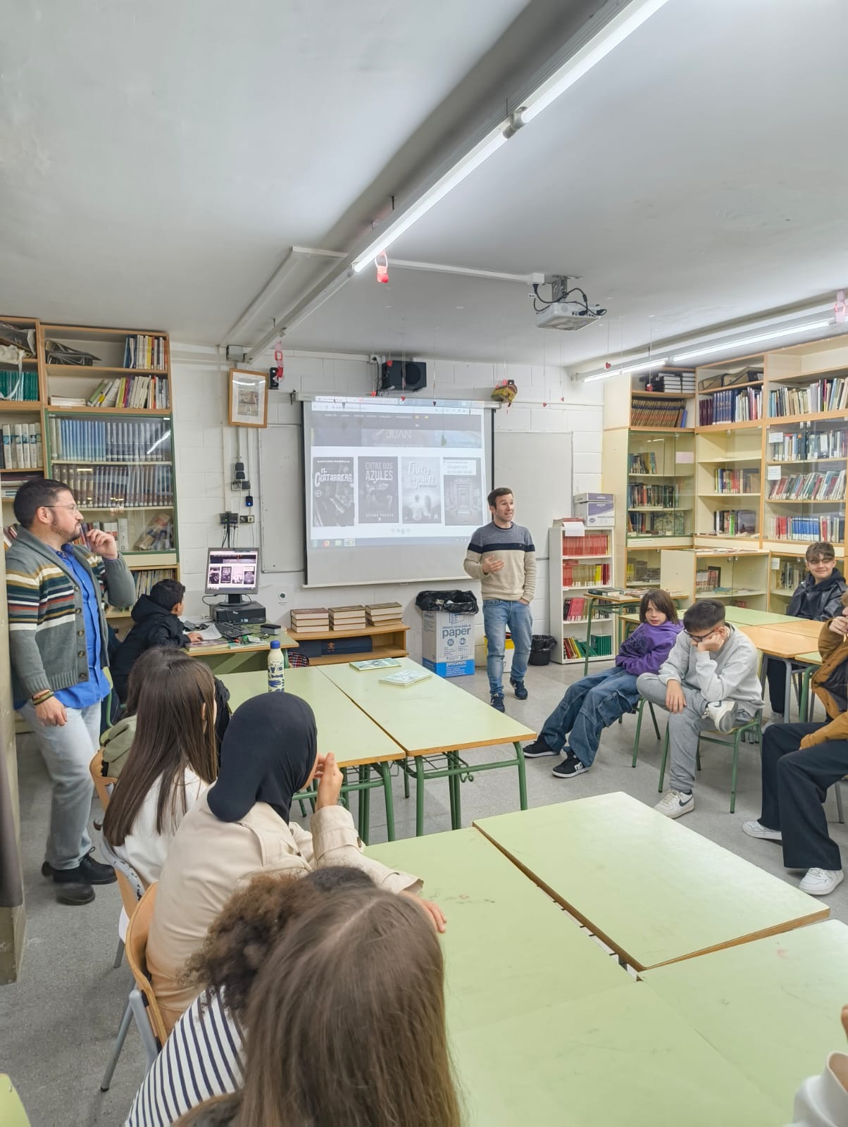 L’activitat es va iniciar amb una retrospectiva de la trajectòria literària de l’autor. Padilla va compartir amb l’alumnat els seus inicis en el món de l’escriptura, les seves motivacions i el procés creatiu que el porta a construir històries compromeses amb la realitat social. Aquesta introducció va permetre entendre millor el context i la intenció de l’obra treballada a l’aula.