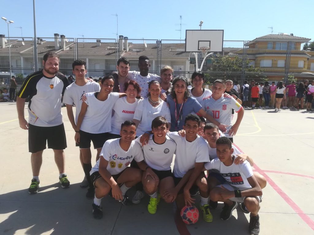 El matí del 19 de juny’19, com a premi pels alumnes que han guanyat el torneigs de bàsquet i de futbol sala de l’institut, s’han celebrat els partits alumnes- professors/es.