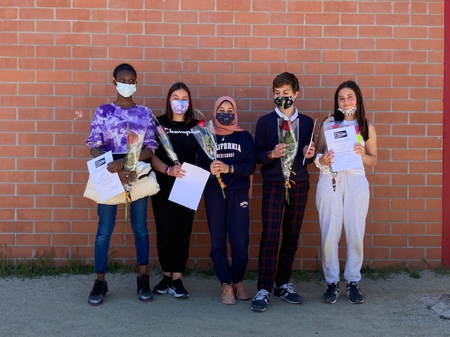 Durant la diada de Sant Jordi a l’institut vam aprofitar per donar premis de diferents categories als alumnes del centre. Així es van atorgar premis des del departament de Llengües (catalana, castellana i anglesa), del departament de Visual i Plàstica i del departament de Matemàtiques, com a resultat de la participació en diferents Concursos. En les imatges veureu els alumnes de 1r cicle en l’Acte de Sant Jordi.