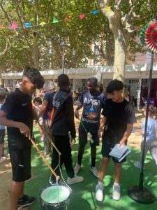 L’alumnat va poder gaudir d’un taller de rellotges de sol i un de fer bombolles.