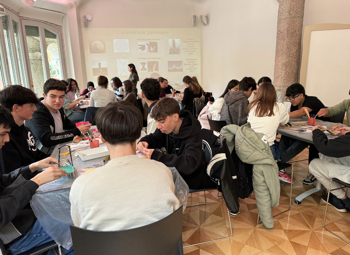 Hem començat amb un taller creatiu, on l’alumnat ha treballat les formes i volums inspirats en l’estètica gaudiniana, explorant les superfícies reglades i construint les seves maquetes.